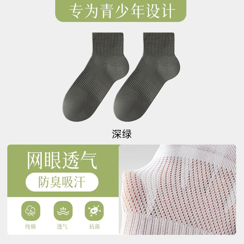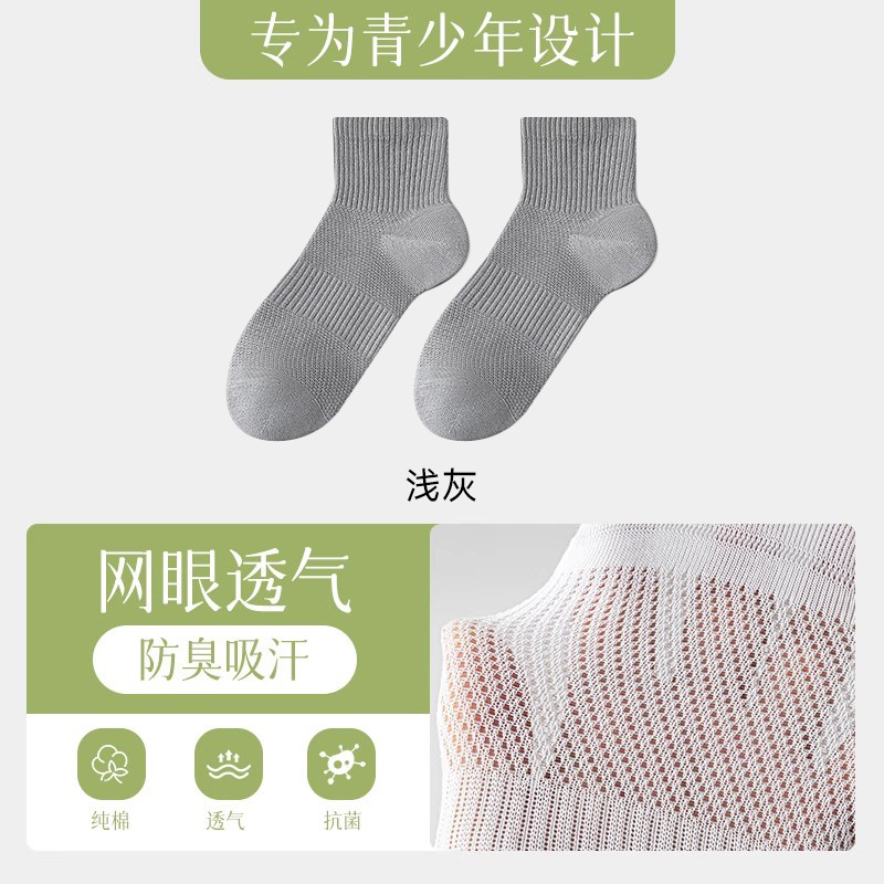 남성 및 청소년용 양말 여름 얇은 10A 항균, 탈취 및 통기성 메쉬 중학생 소년 여름 스포츠 양말스토어 가기
