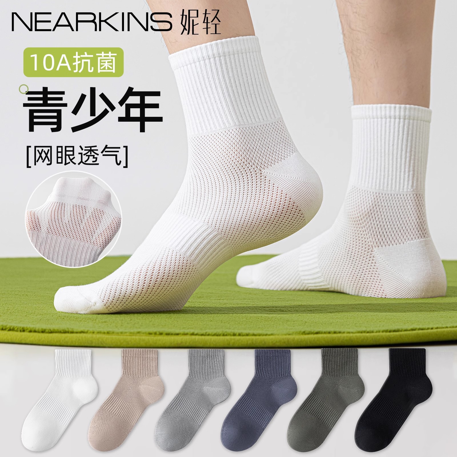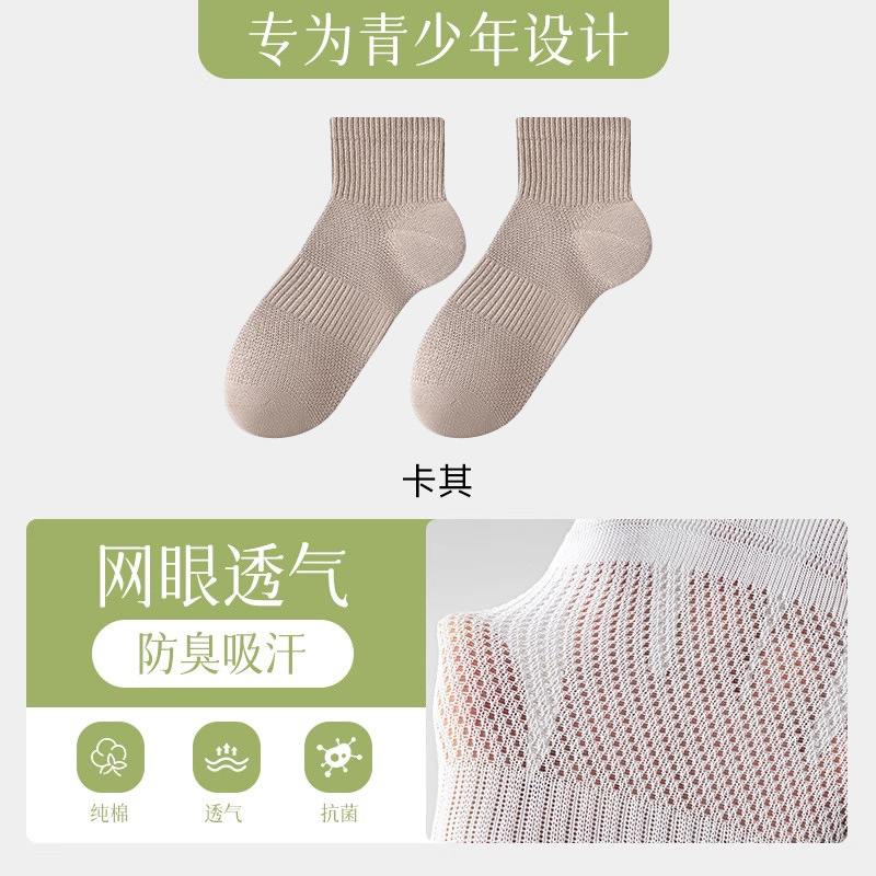 남성 및 청소년용 양말 여름 얇은 10A 항균, 탈취 및 통기성 메쉬 중학생 소년 여름 스포츠 양말