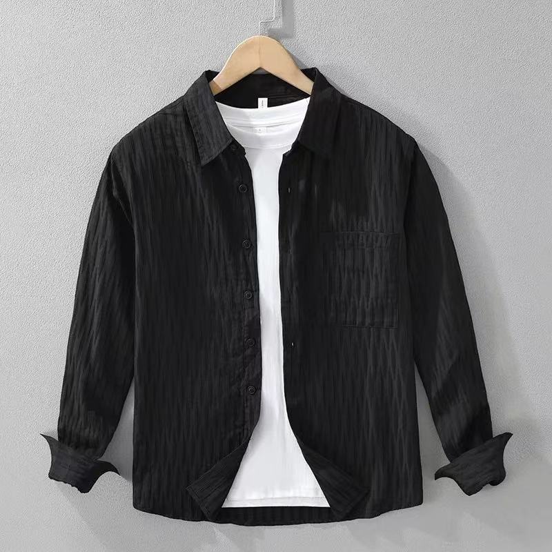 극도로 레트로한 스트라이프 기모 캐주얼 긴팔 셔츠 남성용 일본식 대비 색상 얇은 청소년 문학 및 예술 루즈 셔츠스토어 가기