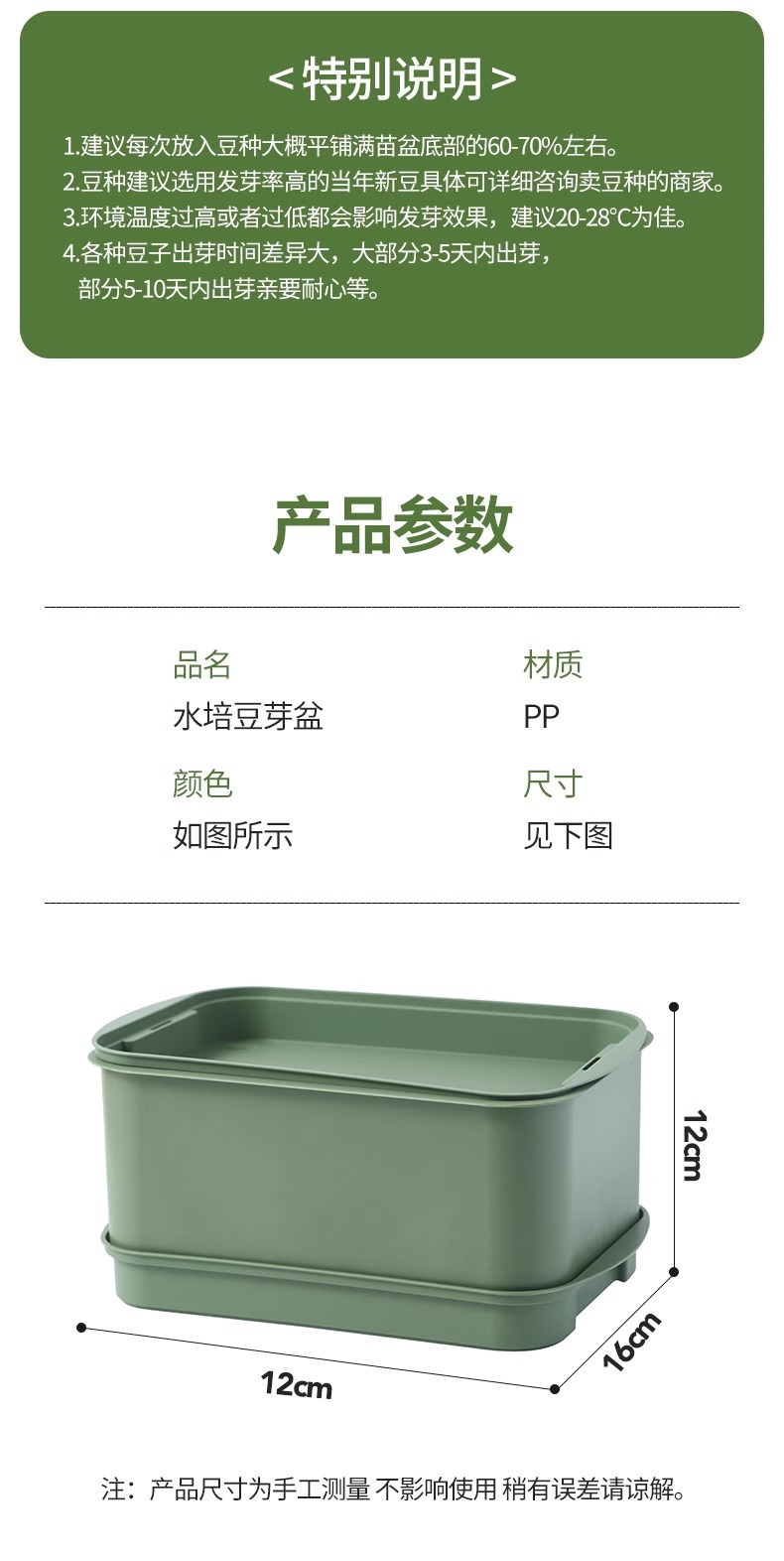 사계절 신선한 콩나물 먹기, 완전 자동 콩나물 발아 도구, 식품등급 대형 수경재배 모종 트레이 특수 화분