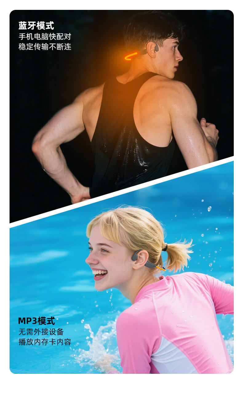 32g 긴 배터리 수영 스포츠 헤드폰이 내장된 골전도 헤드폰이 포함된 국경 간 개인 모델 x500led 발광 램프