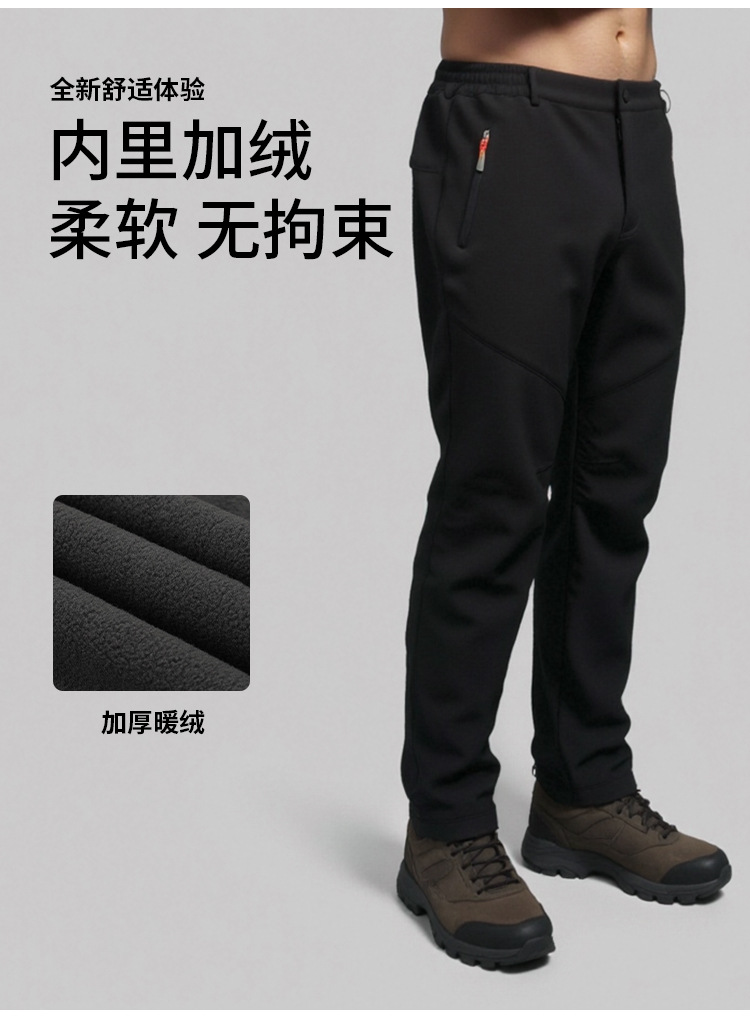 남성과 여성을 위한 가을 겨울 야외 소프트 쉘 바지, 두꺼운 따뜻한 양털 바지, 방수 및 방풍 등산 바지