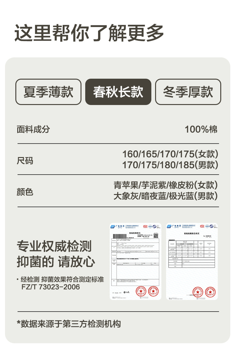 Hongdou 면 남성과 여성 순면 3A 항균 얇은 봄, 여름, 가을 부드럽고 편안한 긴팔 바지 잠옷 여성 정장스토어 가기