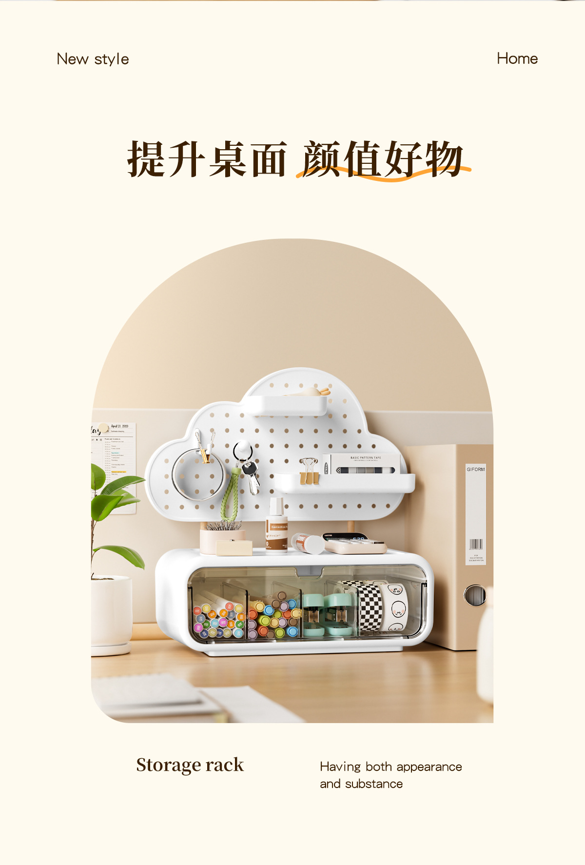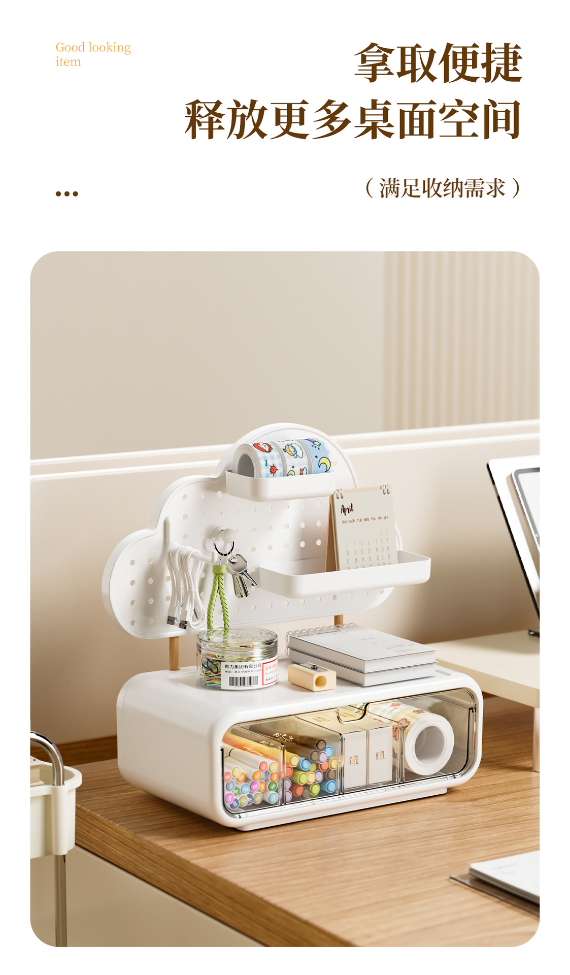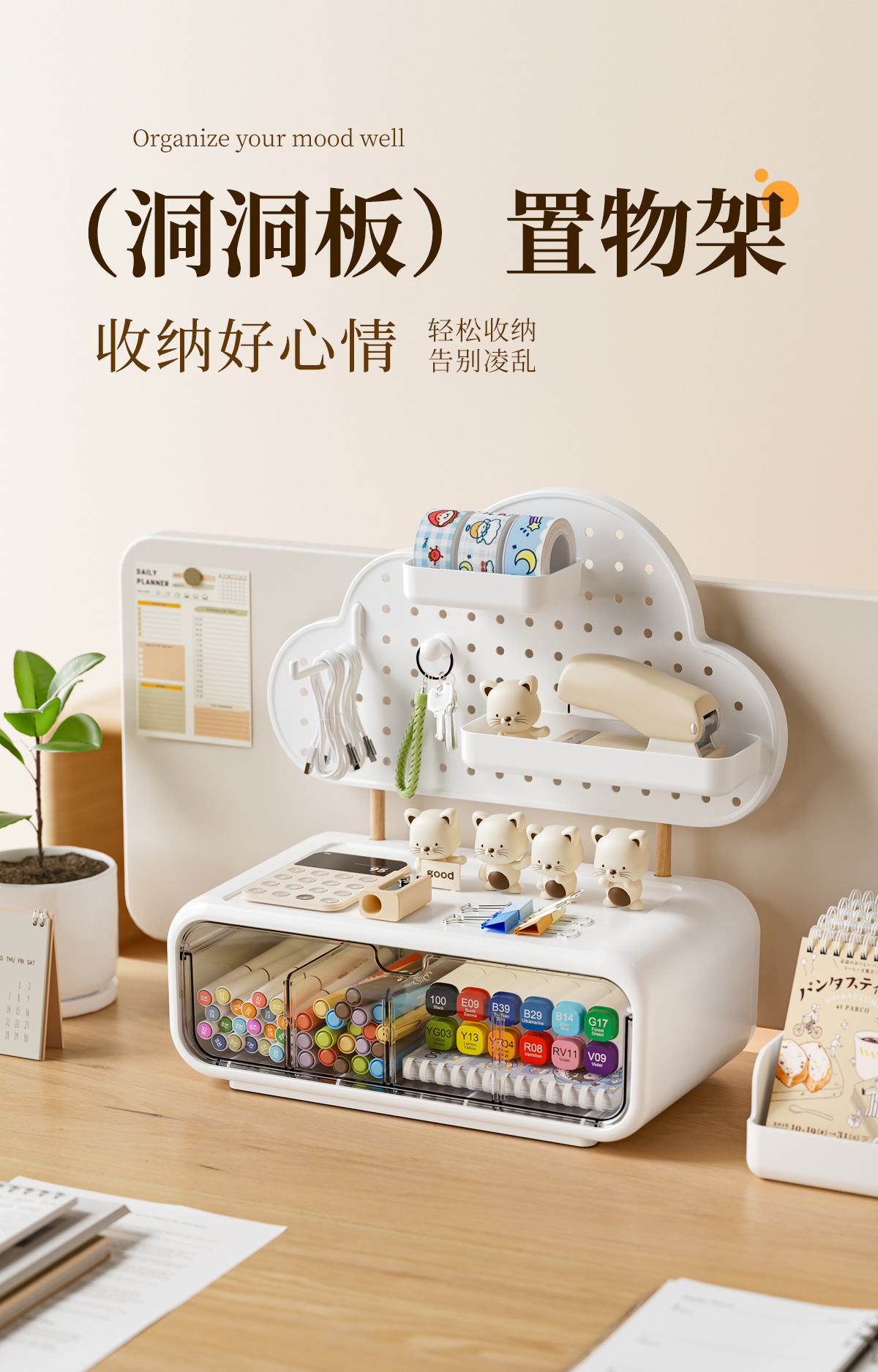 가정용 데스크탑 보관함 구멍 보드 서랍 형 학생 사무실 다기능 책상 문구 보관함