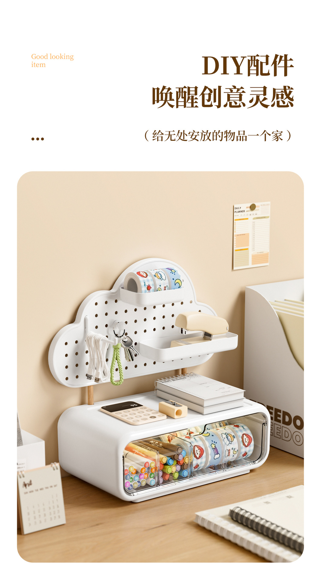 가정용 데스크탑 보관함 구멍 보드 서랍 형 학생 사무실 다기능 책상 문구 보관함스토어 가기