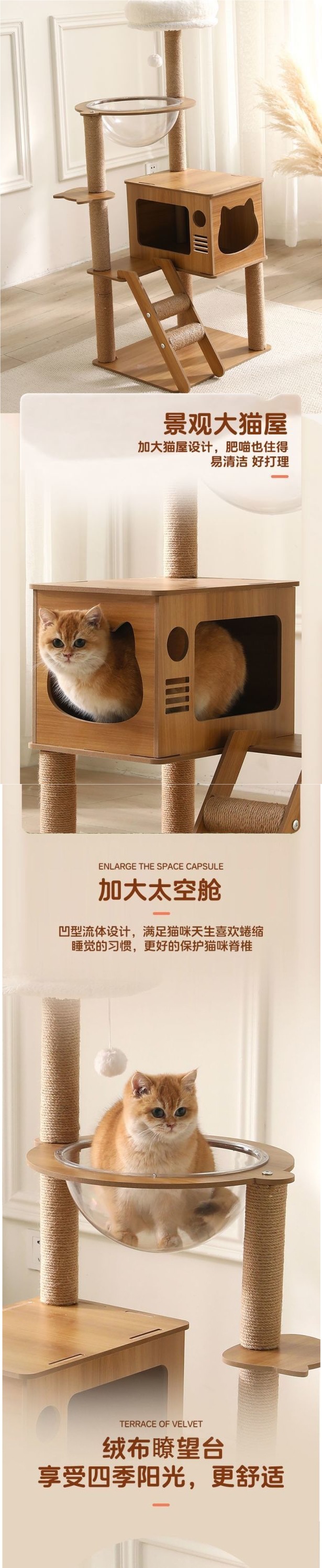고양이 클라이밍 프레임, 우주 캡슐, 고양이 둥지, 고양이 트리, 일체형, 공간 절약형, 내마모성, 침실, 삼베 고양이 스크래치 보드, 고양이 장난감, 고양이 빌라스토어 가기