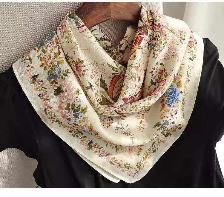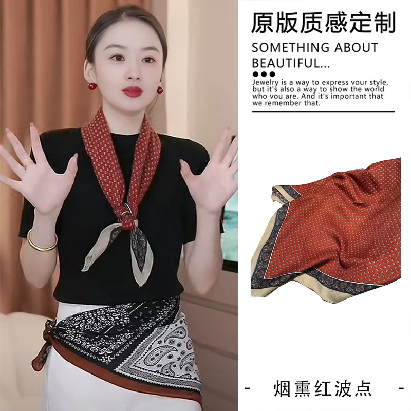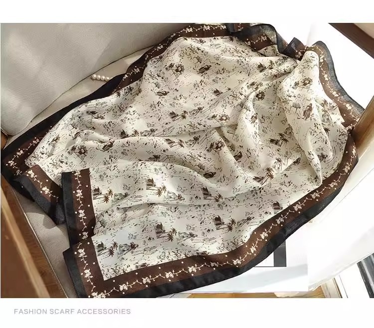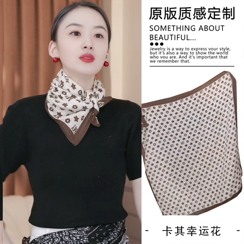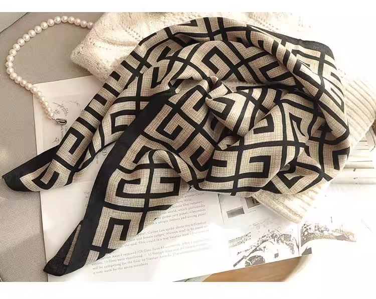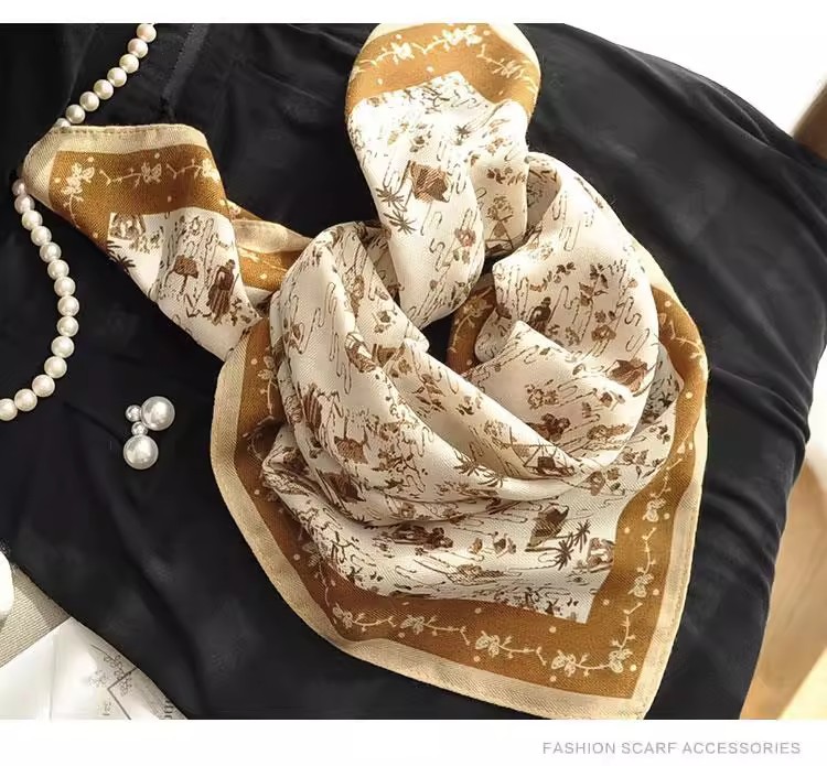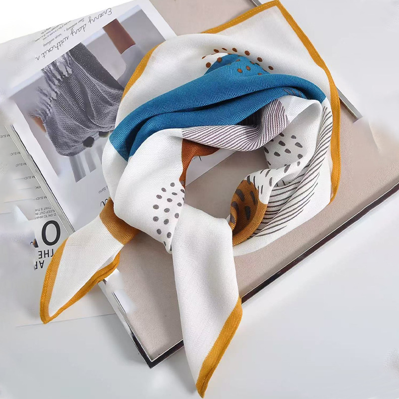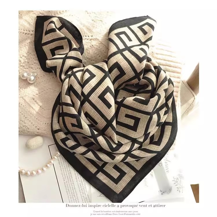 면과 린넨 작은 사각형 스카프 여성 2025 새로운 여름 목 스카프 얇은 면과 린넨 목 스카프