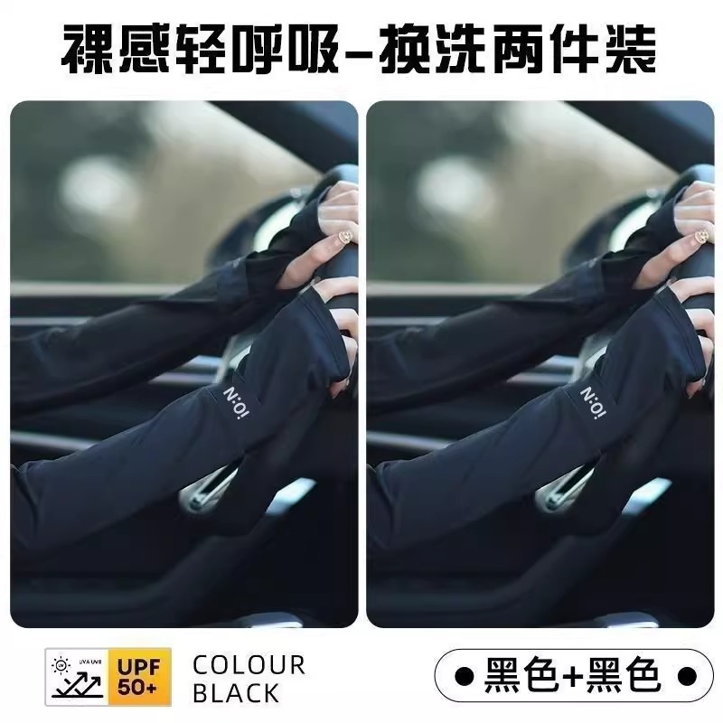 여성을위한 태양 보호 아이스 슬리브 2025 새로운 스타일 사이클링 및 운전 UV 보호 팔 슬리브 태양 보호 블랙 아이스 실크 슬리브