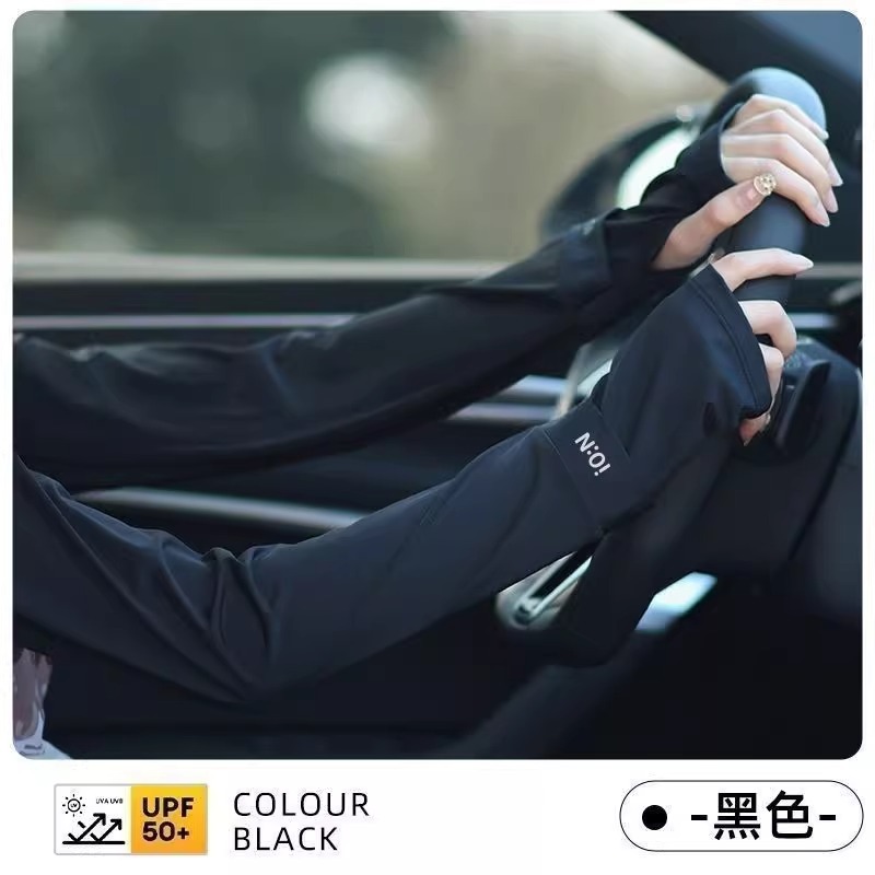 여성을위한 태양 보호 아이스 슬리브 2025 새로운 스타일 사이클링 및 운전 UV 보호 팔 슬리브 태양 보호 블랙 아이스 실크 슬리브스토어 가기