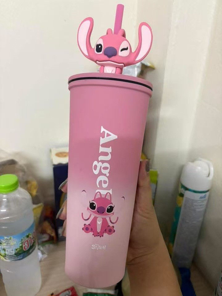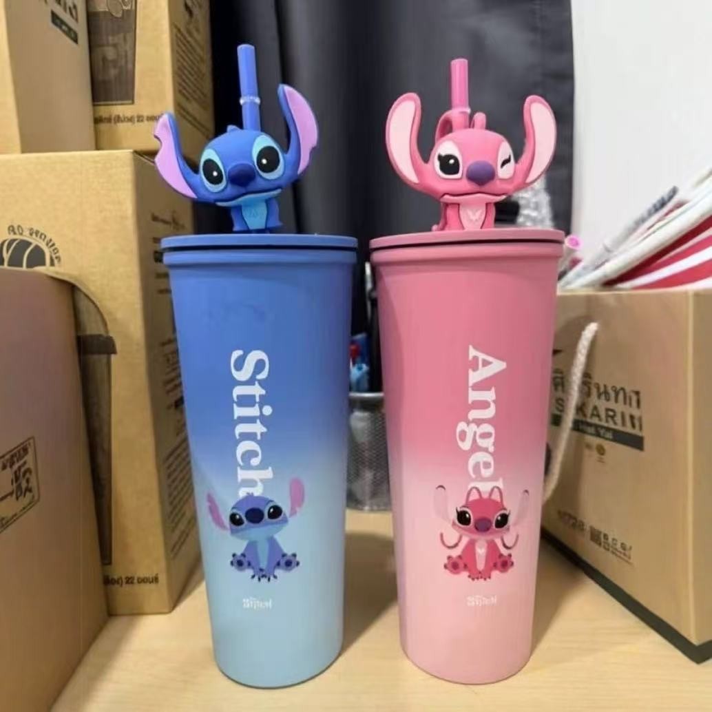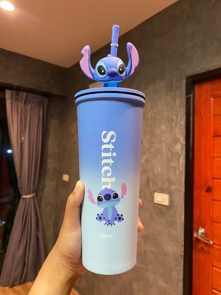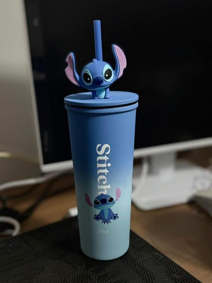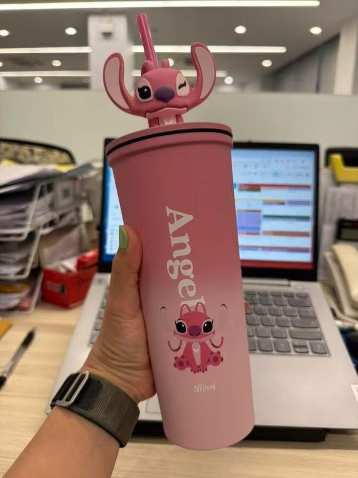대외 무역 스티치 라부브 만화 대용량 보온병 고급스러운 커피컵 휴대용 차량용 빨대 물컵스토어 가기