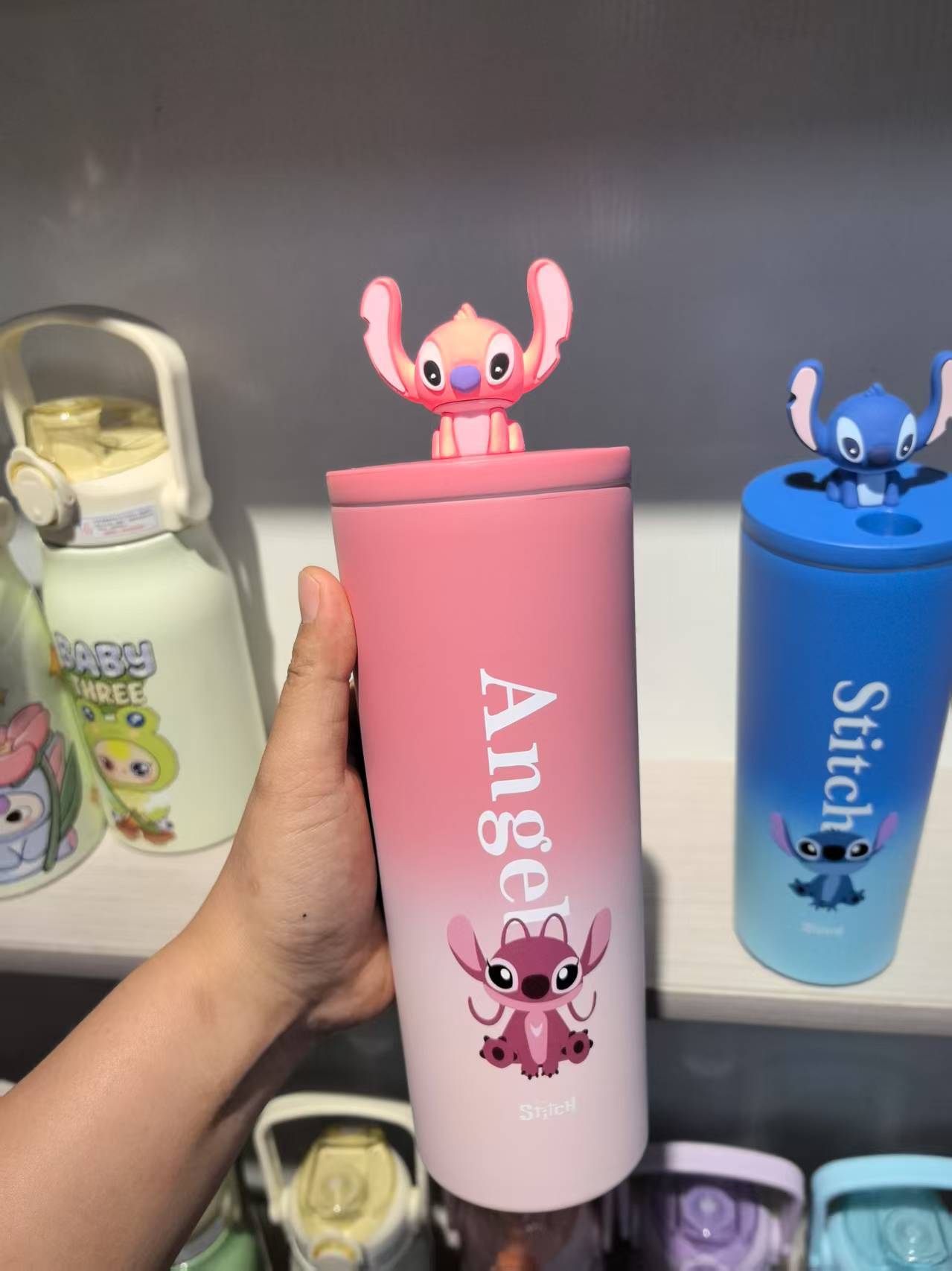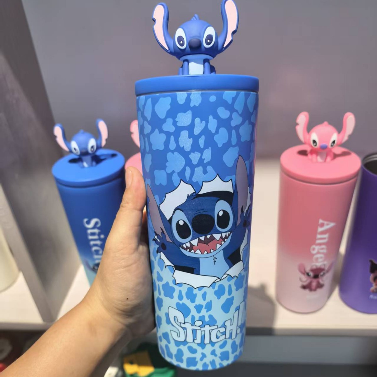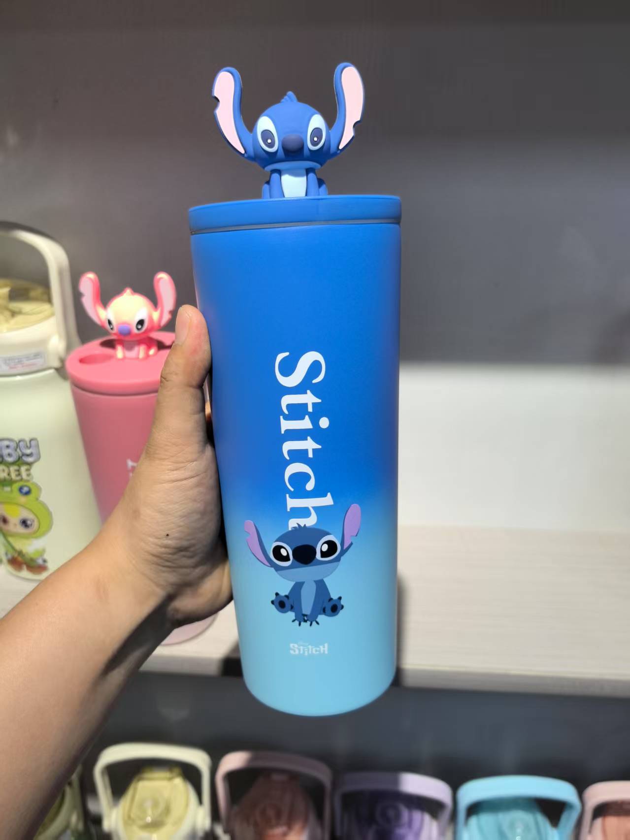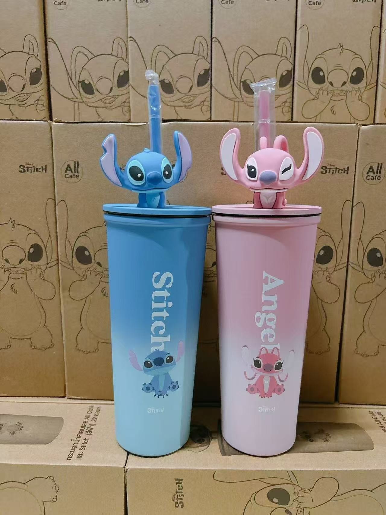 대외 무역 스티치 라부브 만화 대용량 보온병 고급스러운 커피컵 휴대용 차량용 빨대 물컵스토어 가기