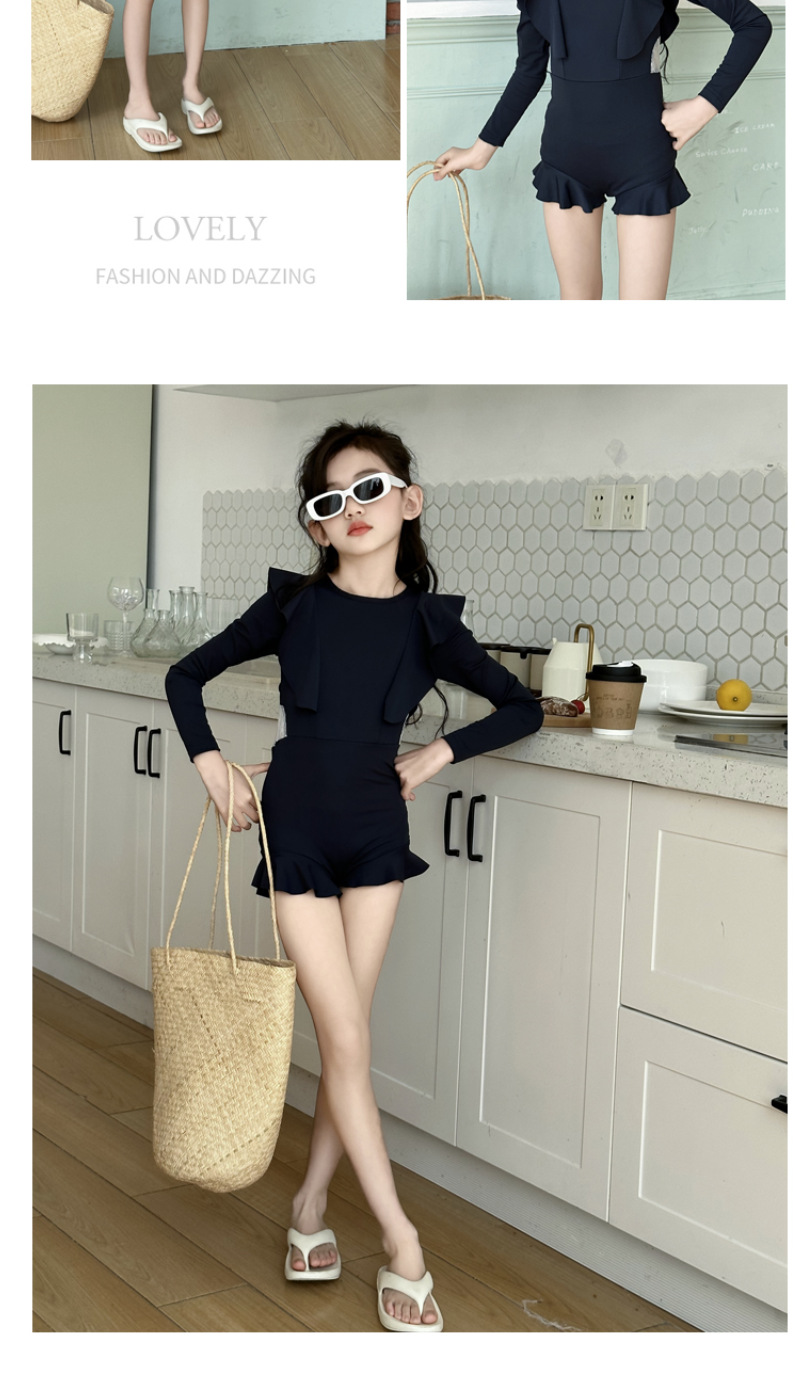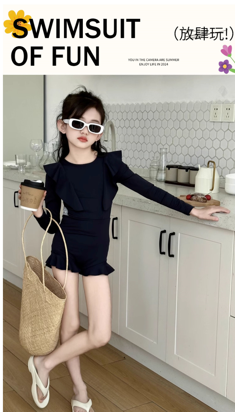 여아 수영복, 새로운 스타일, 큰 여아, 중학생, 보수적인 원피스 수영복, 아동 자외선 차단 수영복, 고급형스토어 가기