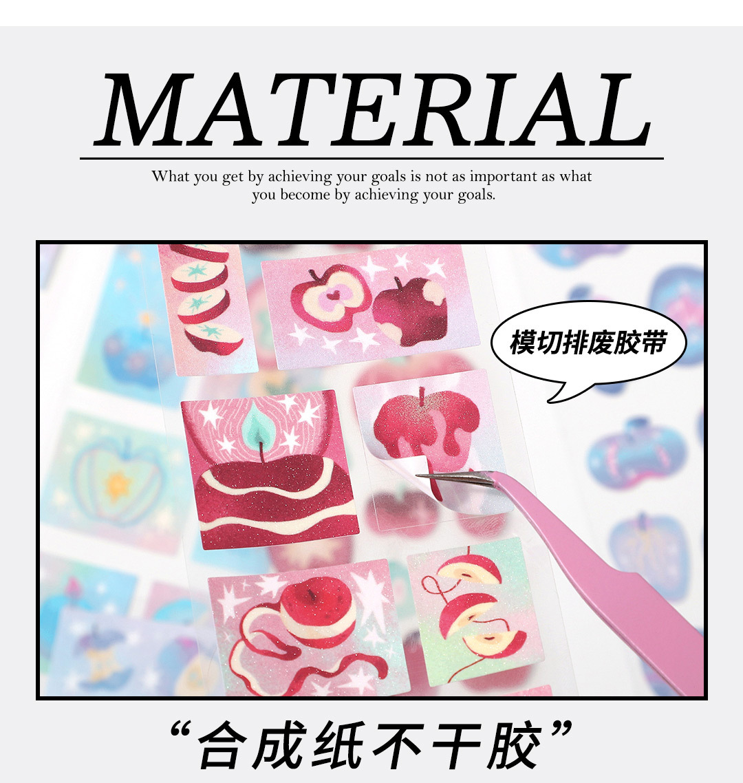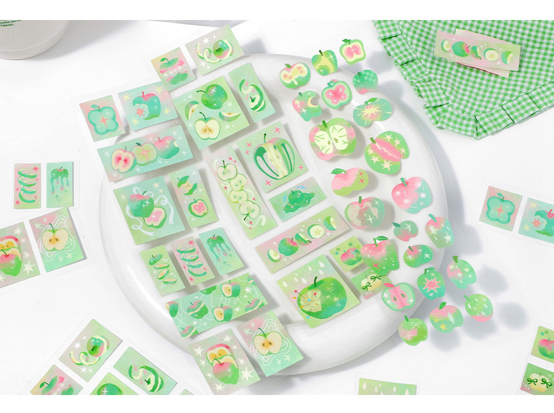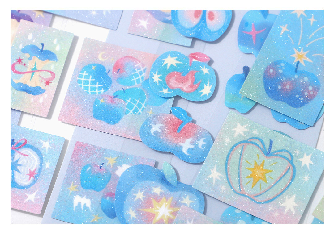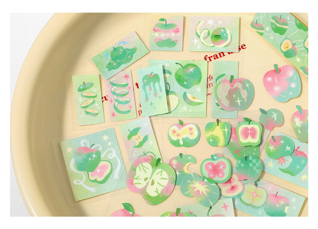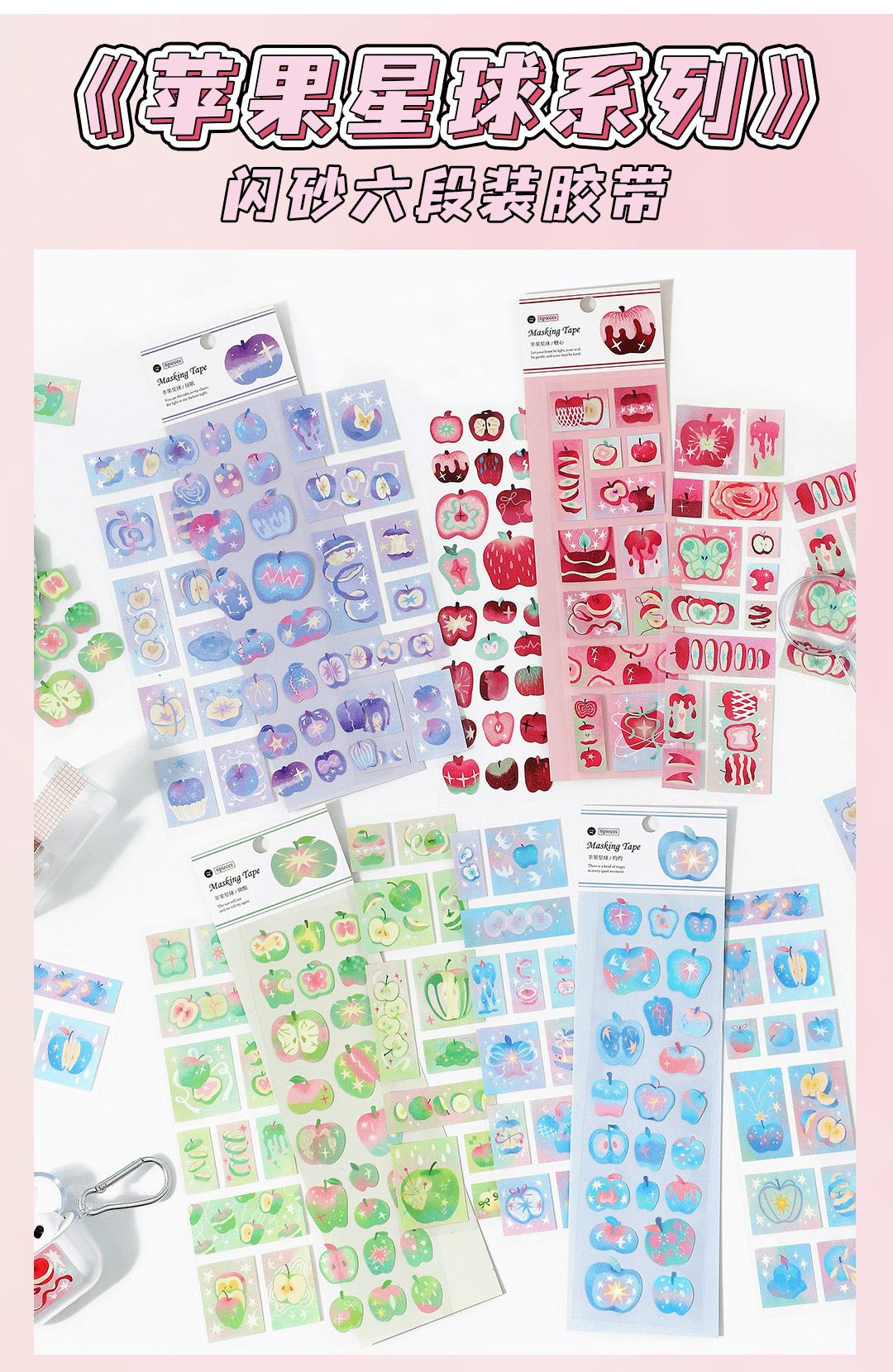 Infeel.Me Apple Planet 테이프 긴 반짝이는 모래 다이 컷 크리에이티브 소재 핸드북 기본 장식 콜라주 스티커