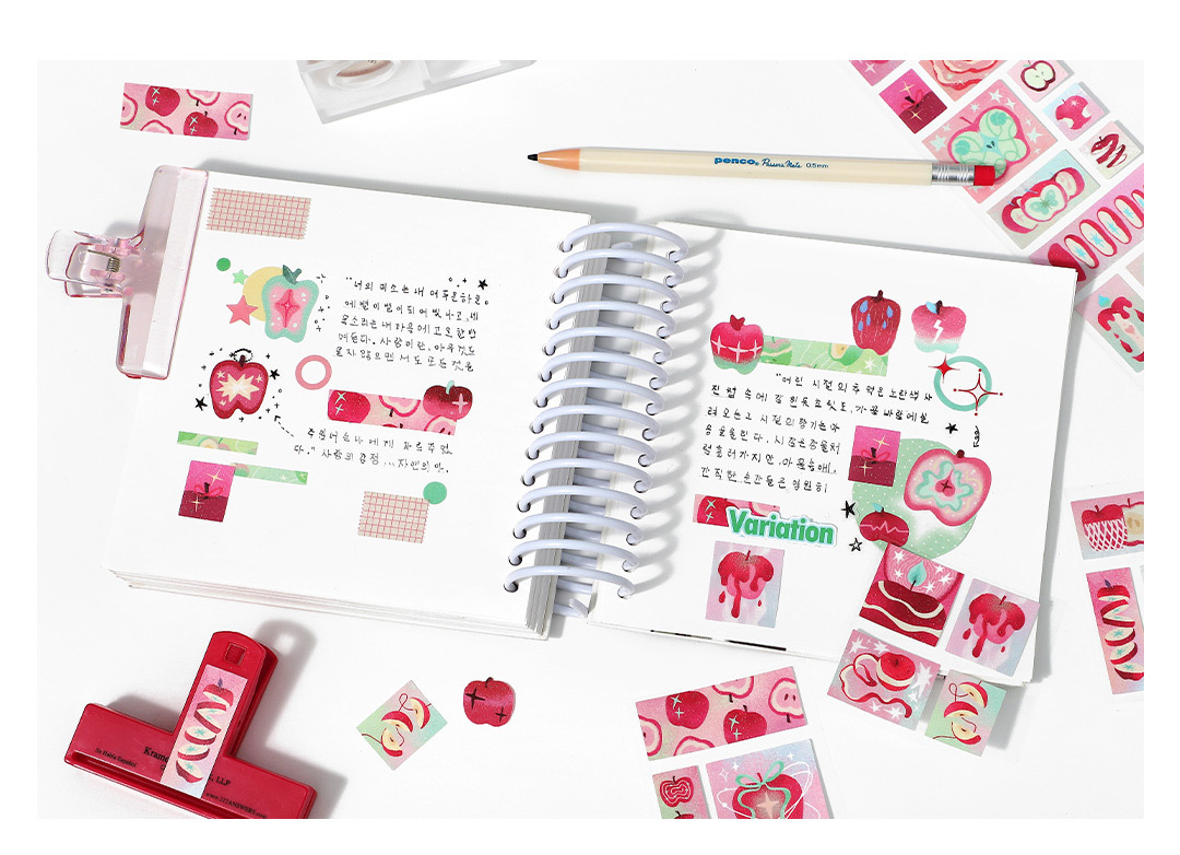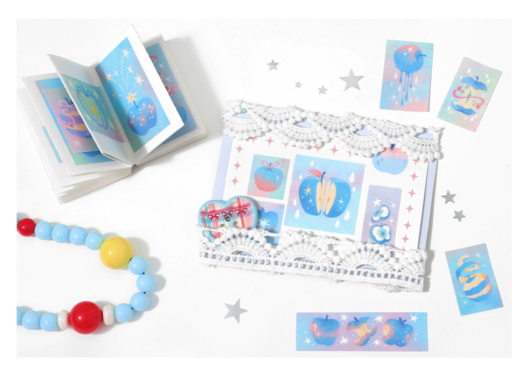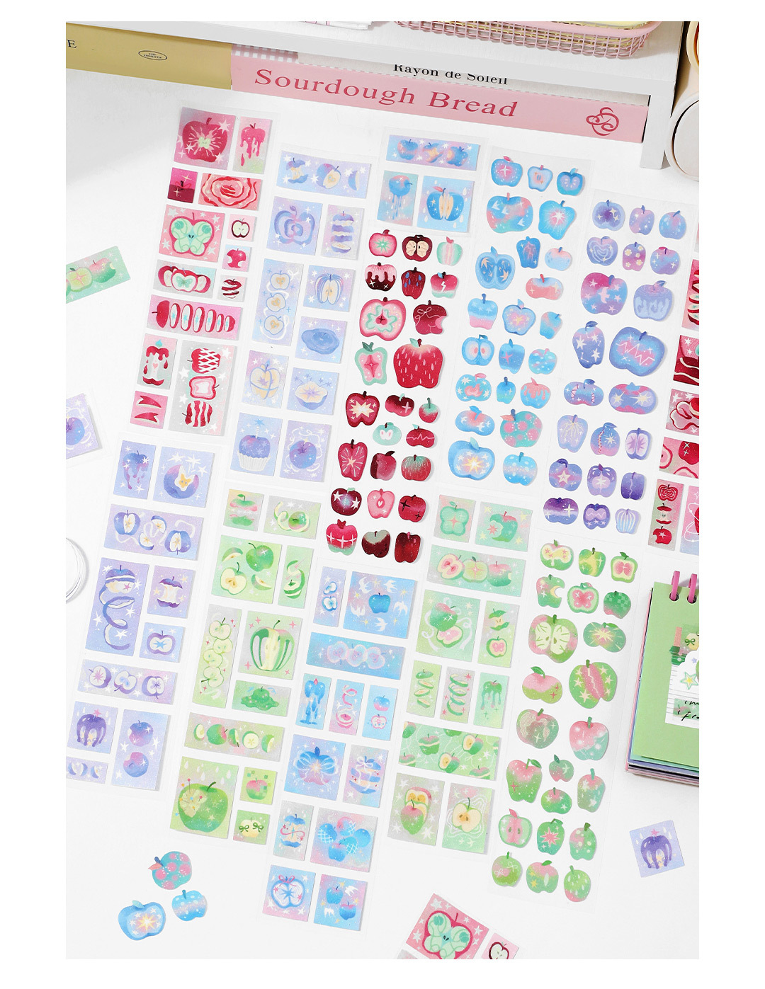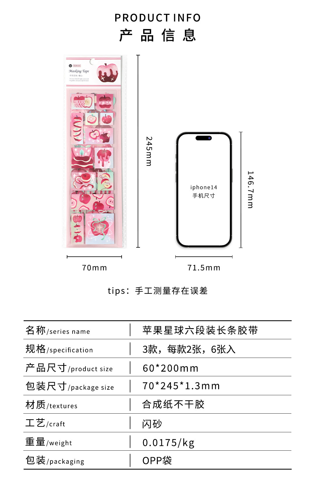 Infeel.Me Apple Planet 테이프 긴 반짝이는 모래 다이 컷 크리에이티브 소재 핸드북 기본 장식 콜라주 스티커