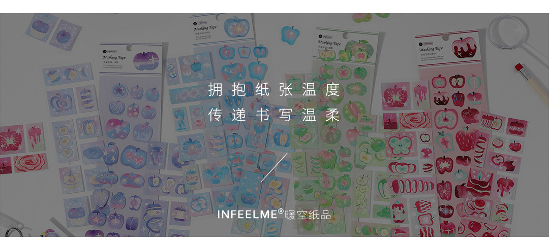 Infeel.Me Apple Planet 테이프 긴 반짝이는 모래 다이 컷 크리에이티브 소재 핸드북 기본 장식 콜라주 스티커스토어 가기