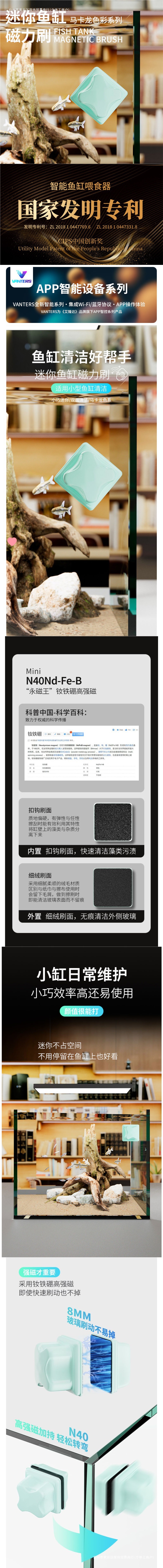 강력한 자석 브러시, 소형 자석 수조 유리 닦이, 유리 청소, 물때 제거 수조 브러시, 소형 조류 긁는 삽