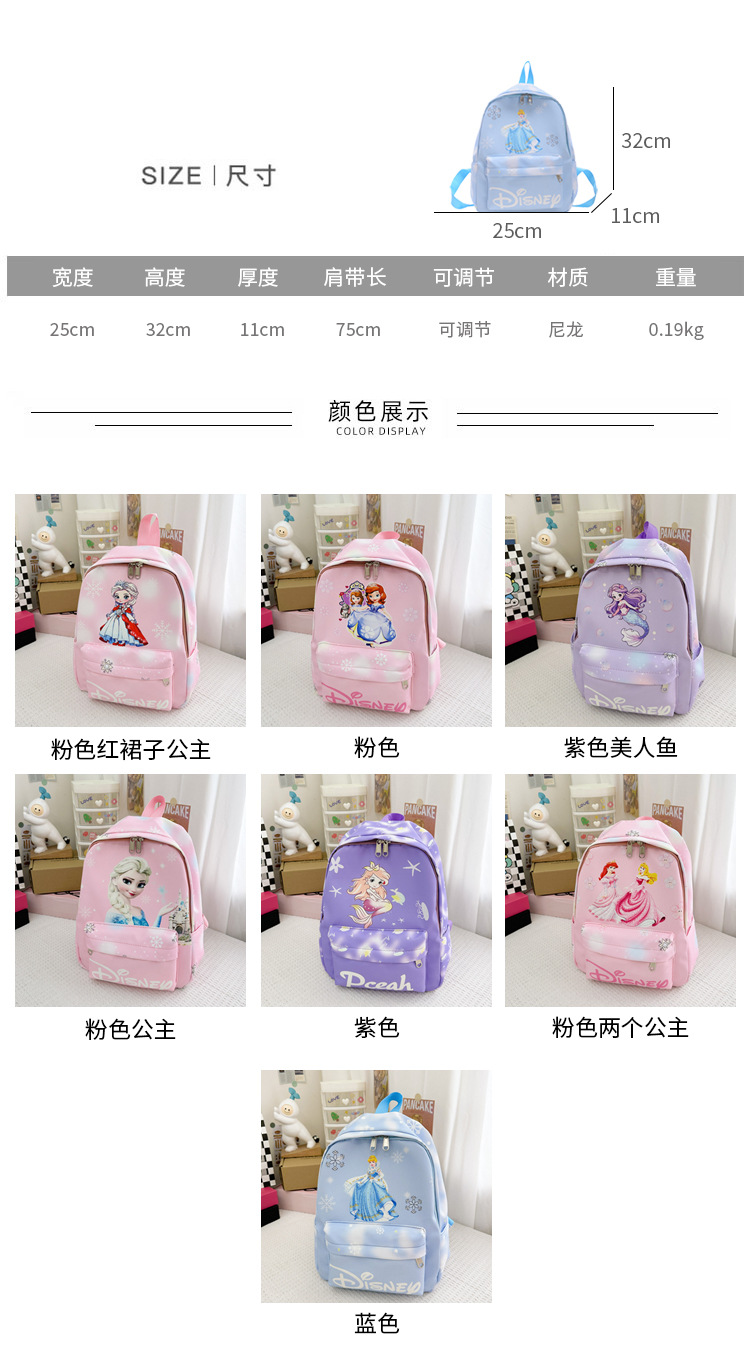 소녀를위한 새로운 어린이 학교 가방 귀여운 만화 공주 작은 가방 야외 레저 다목적 배낭 유치원 가방