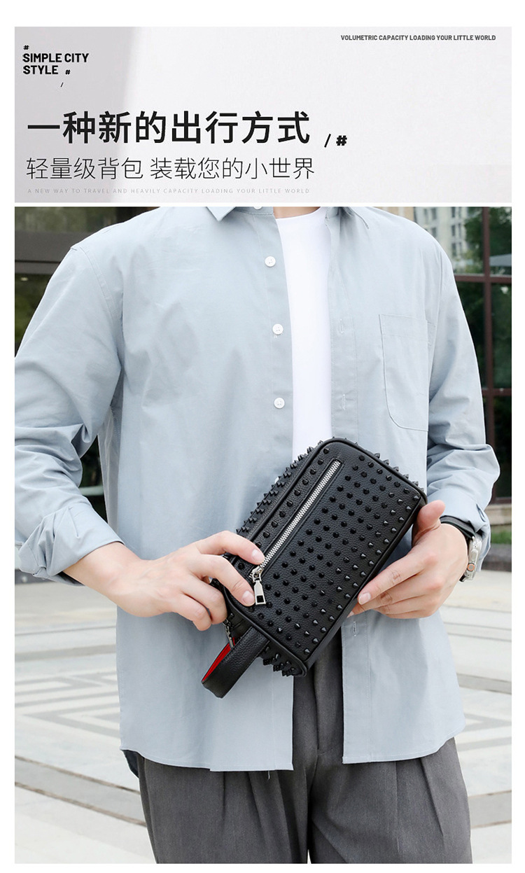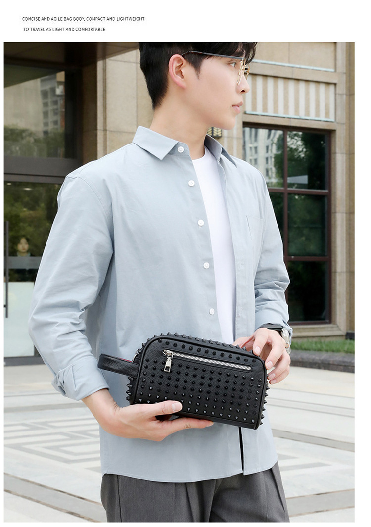 국경을 넘나드는 유럽과 미국 남성 맞춤형 리벳 핸드백 클러치 백 남성용 가방 심플 패션 청소년 다용도 대비 컬러 가방 소형스토어 가기
