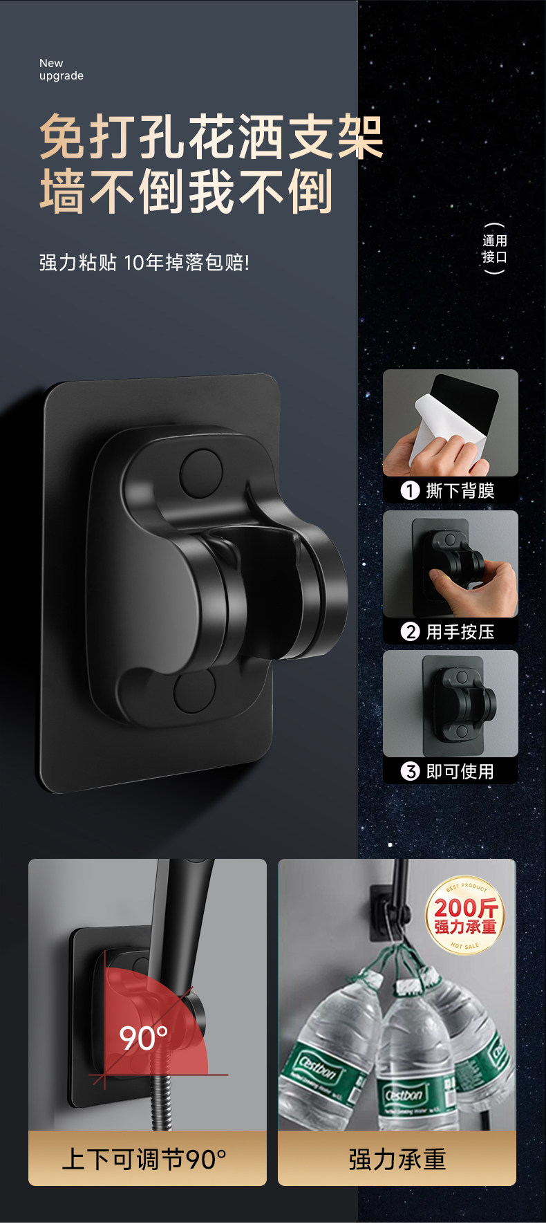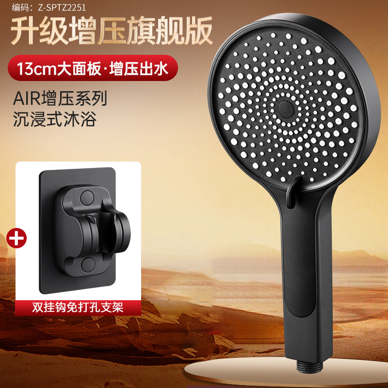 • [야오예 블랙세트2] 가압식 대형 배수 샤워기 + 펀치프리 브라켓
