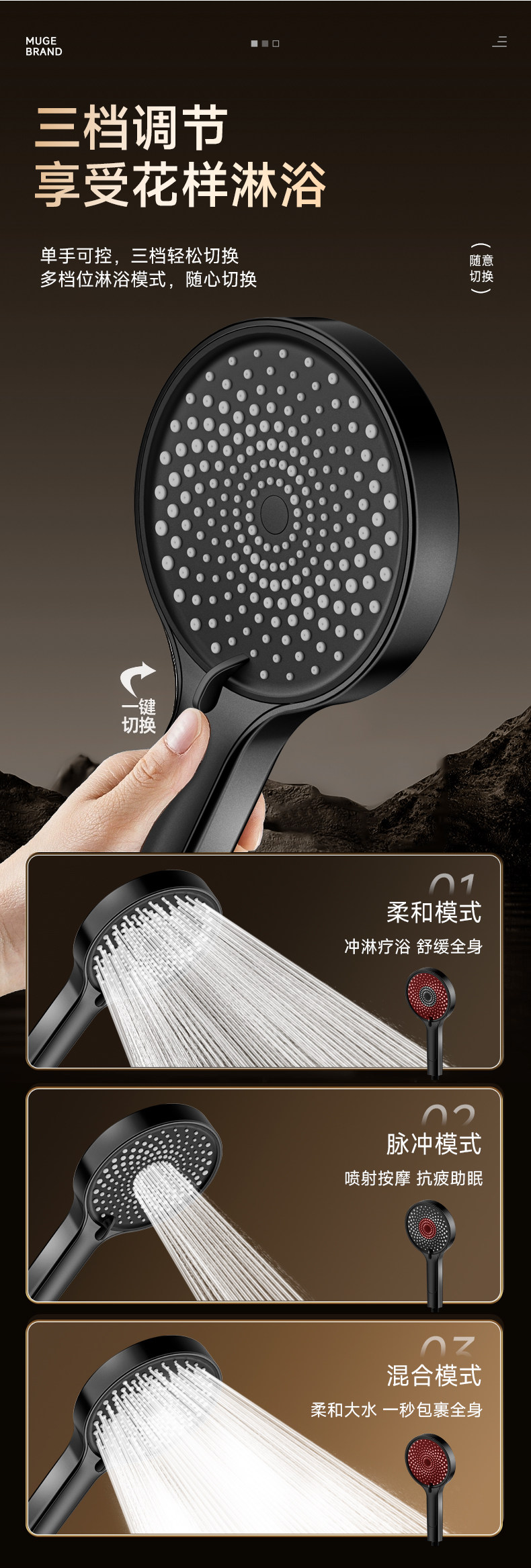 • [건그레이세트2] 가압식 대형 배수 샤워기 + 펀치프리 브라켓