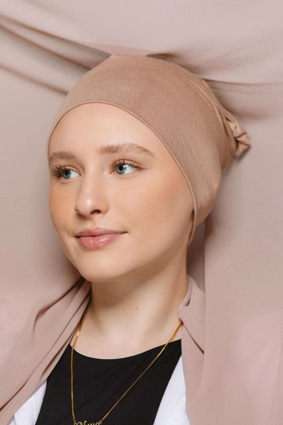 AliExpress의 인기 판매 새로운 스타일 게으른 쉬폰 편리한 터번 자석 버클 고정 방지 솔리드 컬러 다용도 스카프 재고 있음