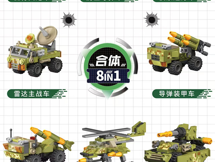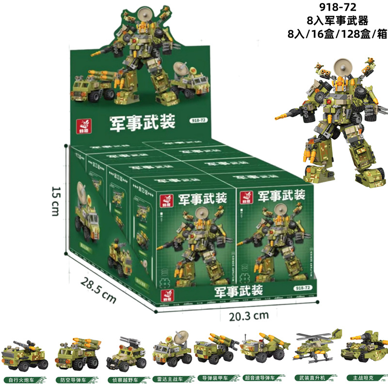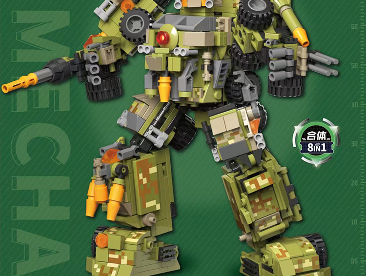 작은 입자 빌딩 블록 장난감 군사 엔지니어링 차량 변형 8-in-one 로봇 크레인 지게차 소년 빌딩 블록 장난감스토어 가기
