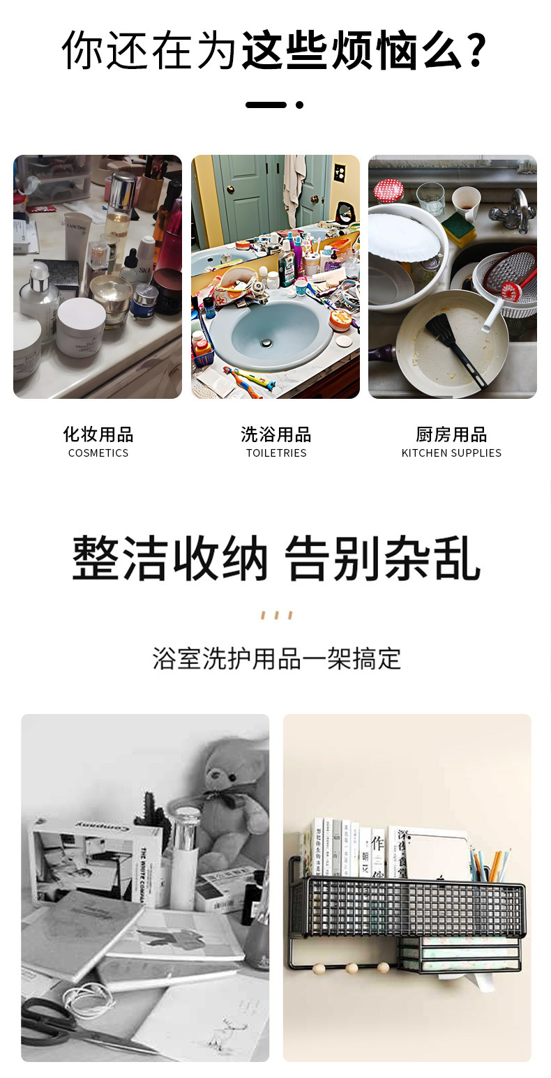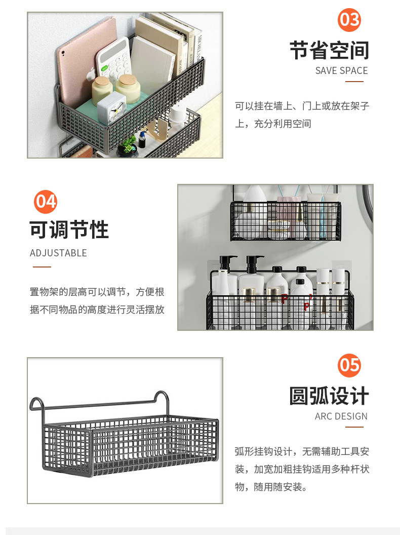 욕실 그리드 수납 선반, 펀치 없는 대용량 걸이 바구니, 욕실 세면대, 주방 벽 수납 유물