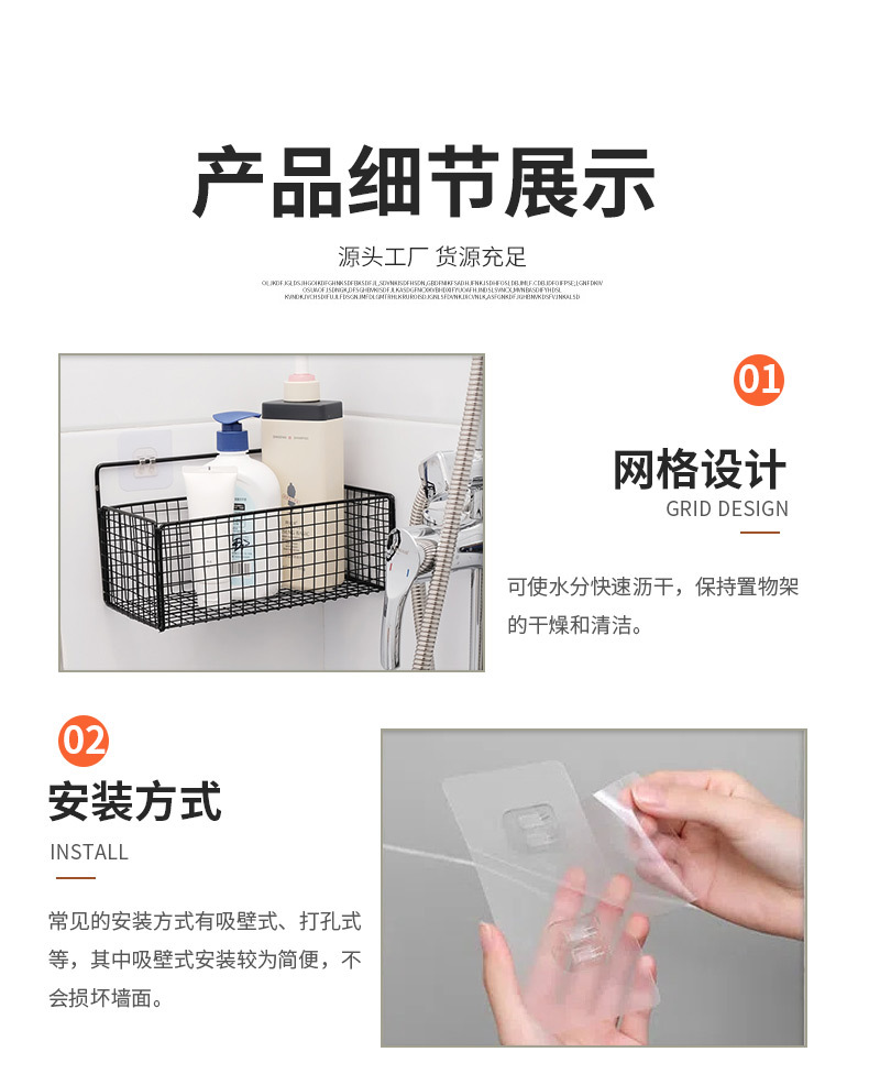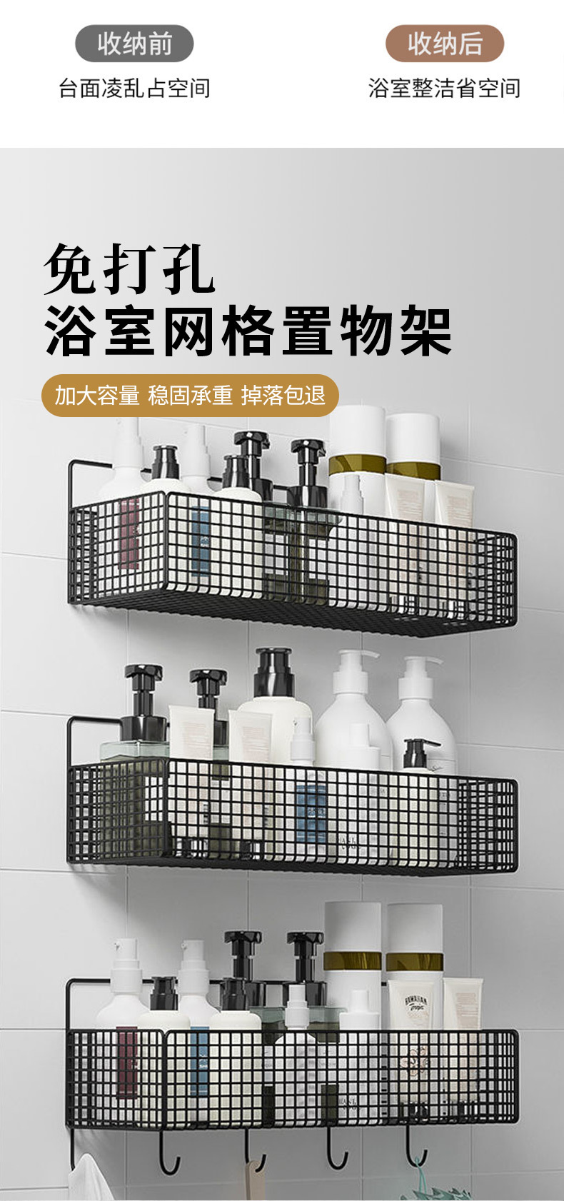 욕실 그리드 수납 선반, 펀치 없는 대용량 걸이 바구니, 욕실 세면대, 주방 벽 수납 유물스토어 가기