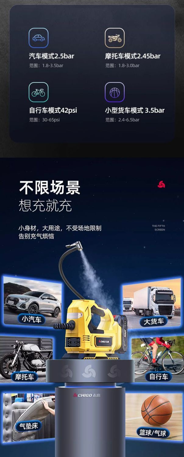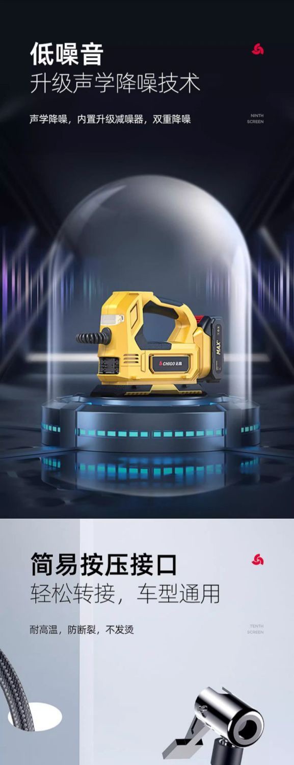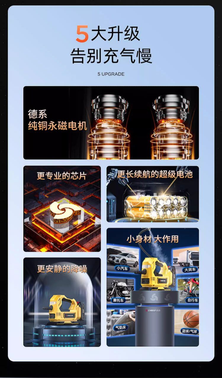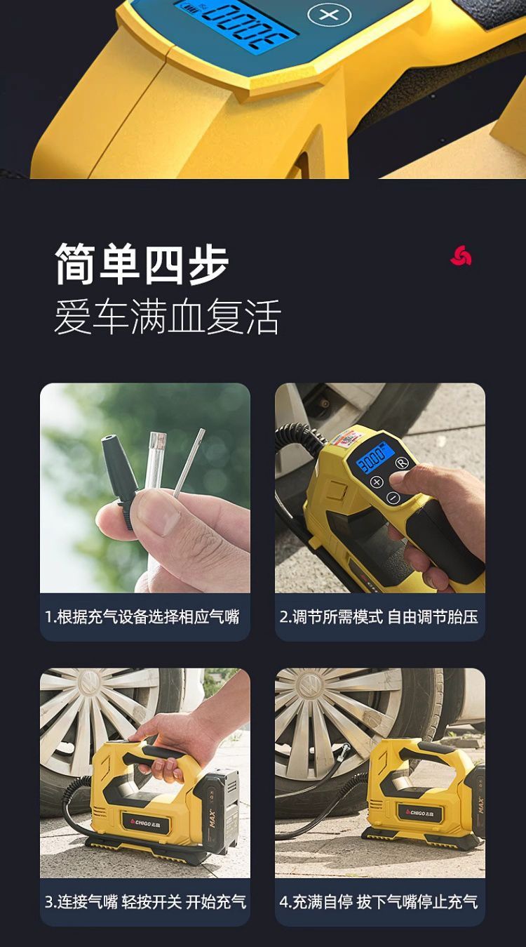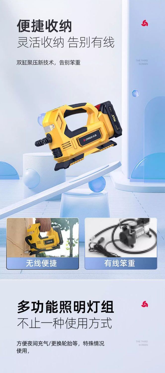 Chigo 휴대용 자동차 무선 공기 펌프 자동차 야외 펌프 고압 공기 펌프 목공 네일 건 사용 가능스토어 가기