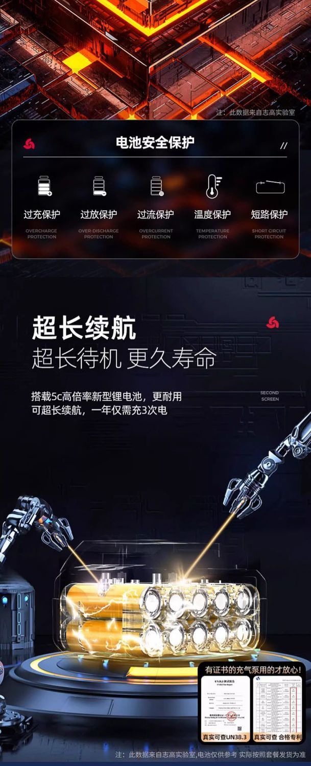 • 5C 리튬 배터리 + 6개 액세서리가 포함된 완전한 버전