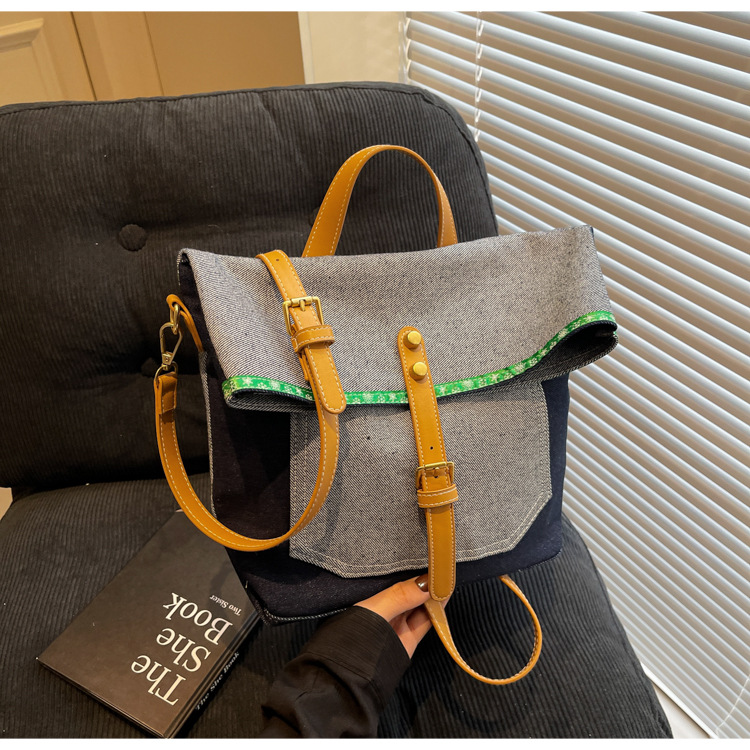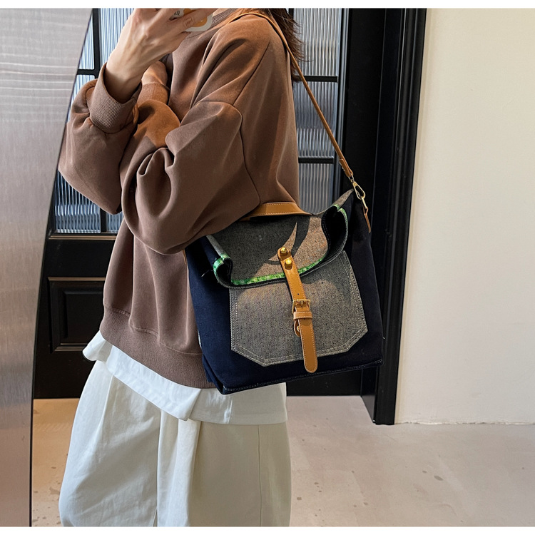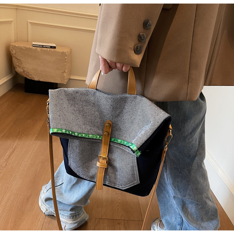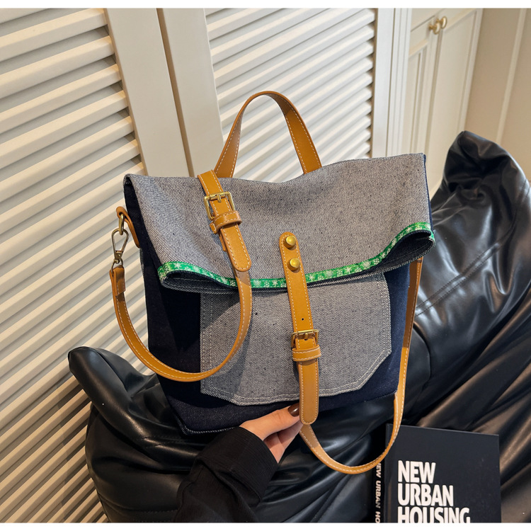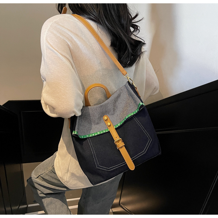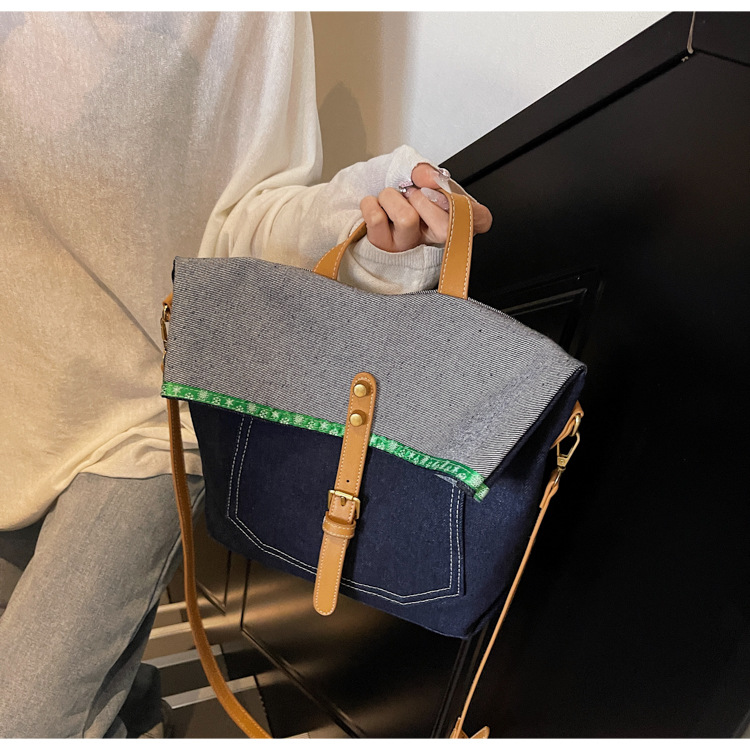 서양식 데님 토트백, 절묘하고 고귀한 숄더 크로스백, 개성 있고 패셔너블한 새로운 한국식 캐주얼 핸드백