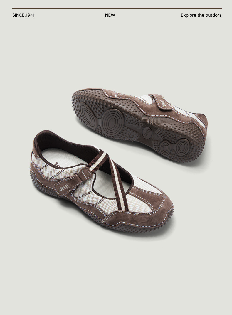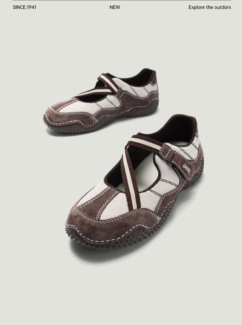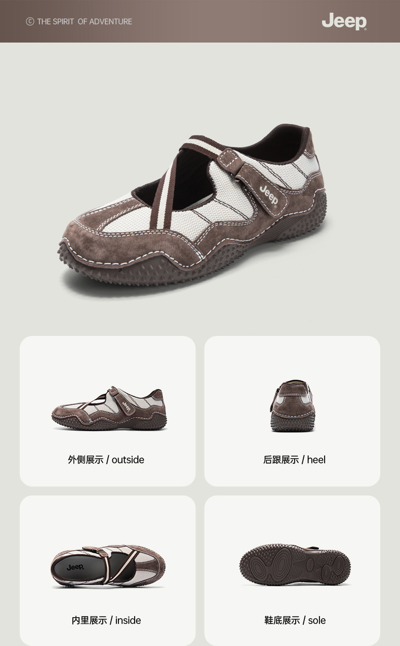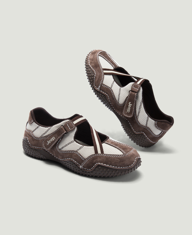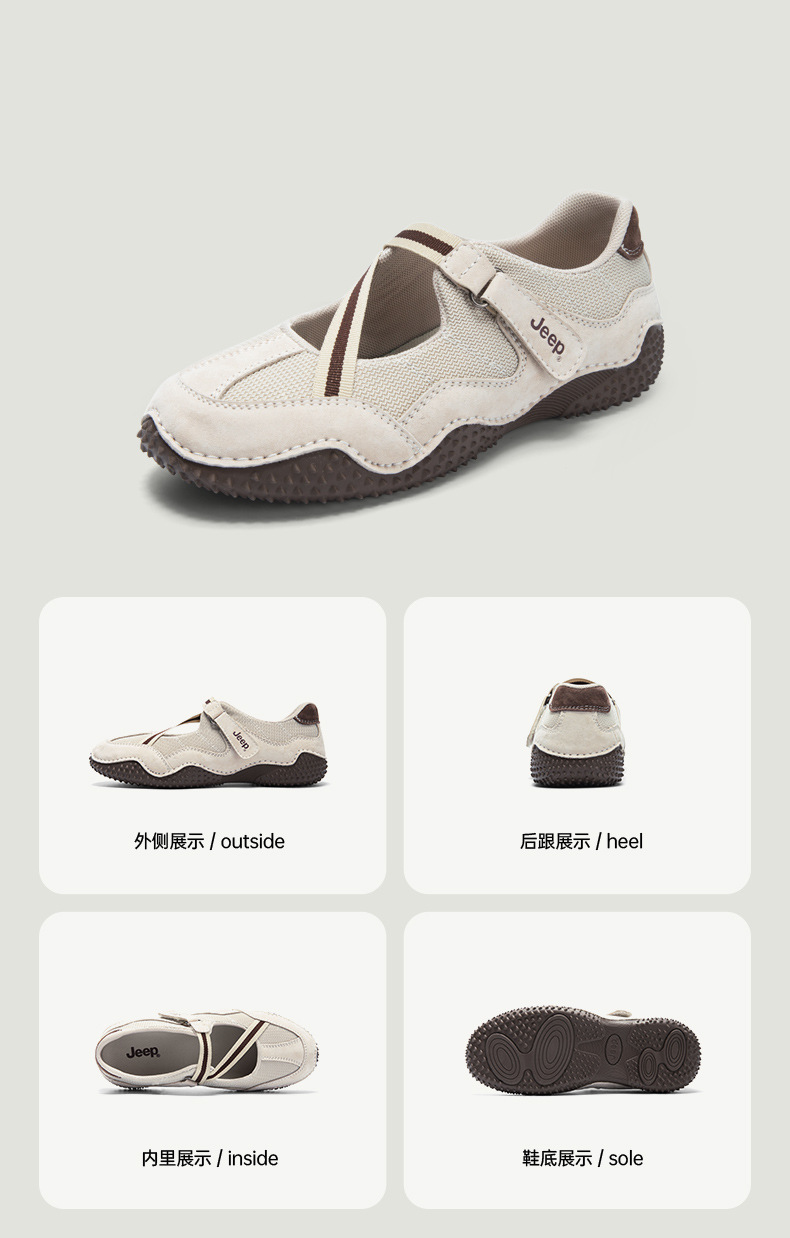 Jeep Jeep 프렌치 메리 제인 여성 2025 새로운 복고풍 캐주얼 작은 가죽 신발 미끄럼 방지 얕은 입 플랫 신발스토어 가기