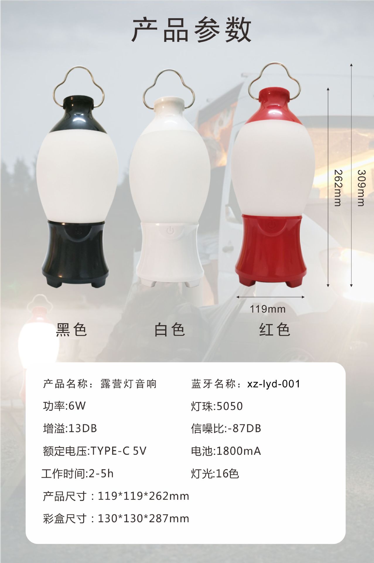 • 레드 블루투스 오디오 캠핑 라이트