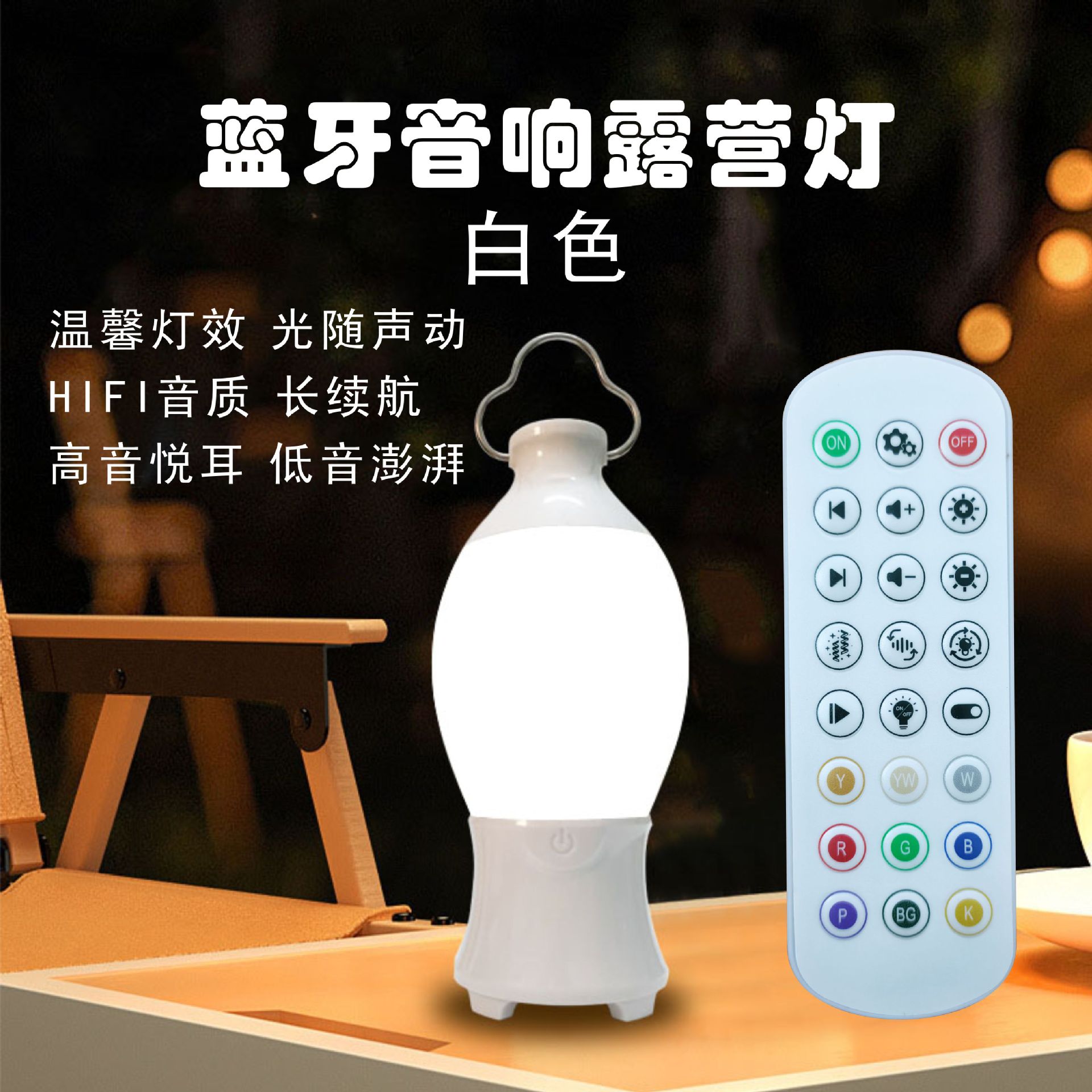 • 화이트 블루투스 오디오 캠핑 라이트