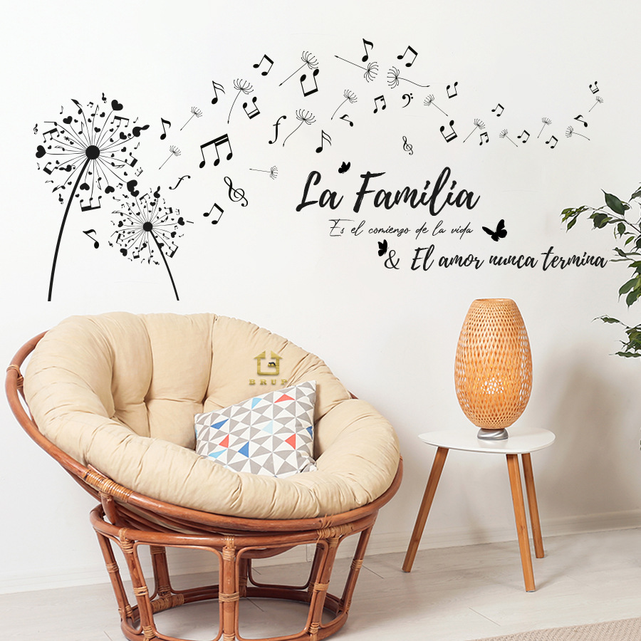 BR3913F 민들레 악보 노트 간단한 가족 자체 접착 벽 스티커 작은 신선한 침실 연구 장식 스티커스토어 가기