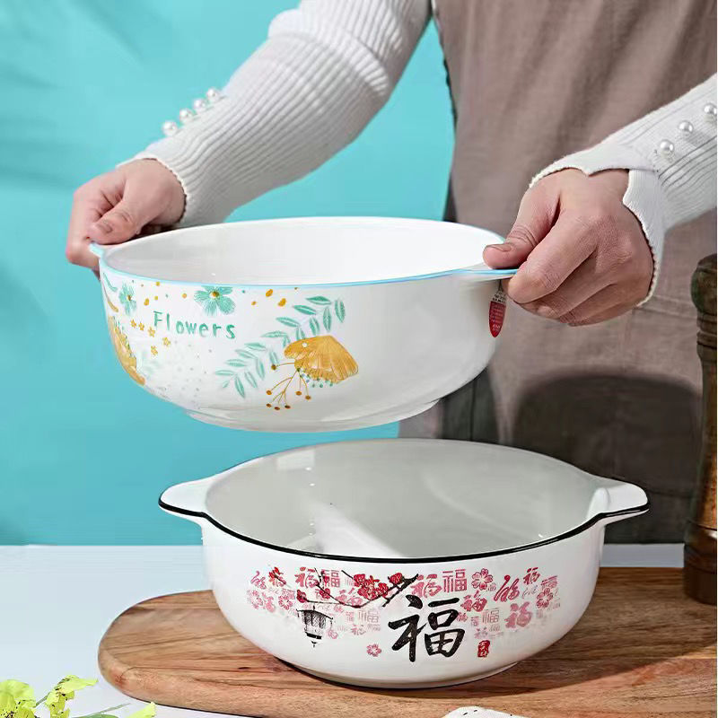 동백 대형 그릇 세라믹 대형 수프 그릇 피클 생선 양귀 가정용 상업용 대형 그릇 깊고 두꺼운 대형 그릇 마오카이 그릇