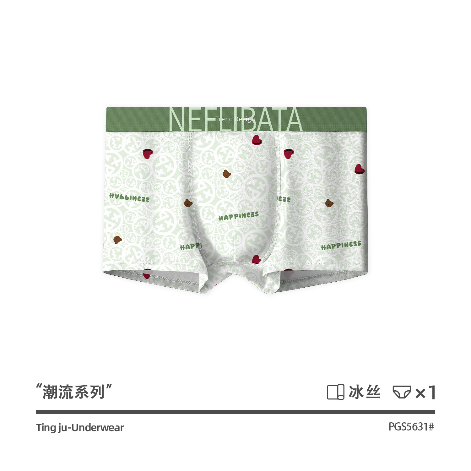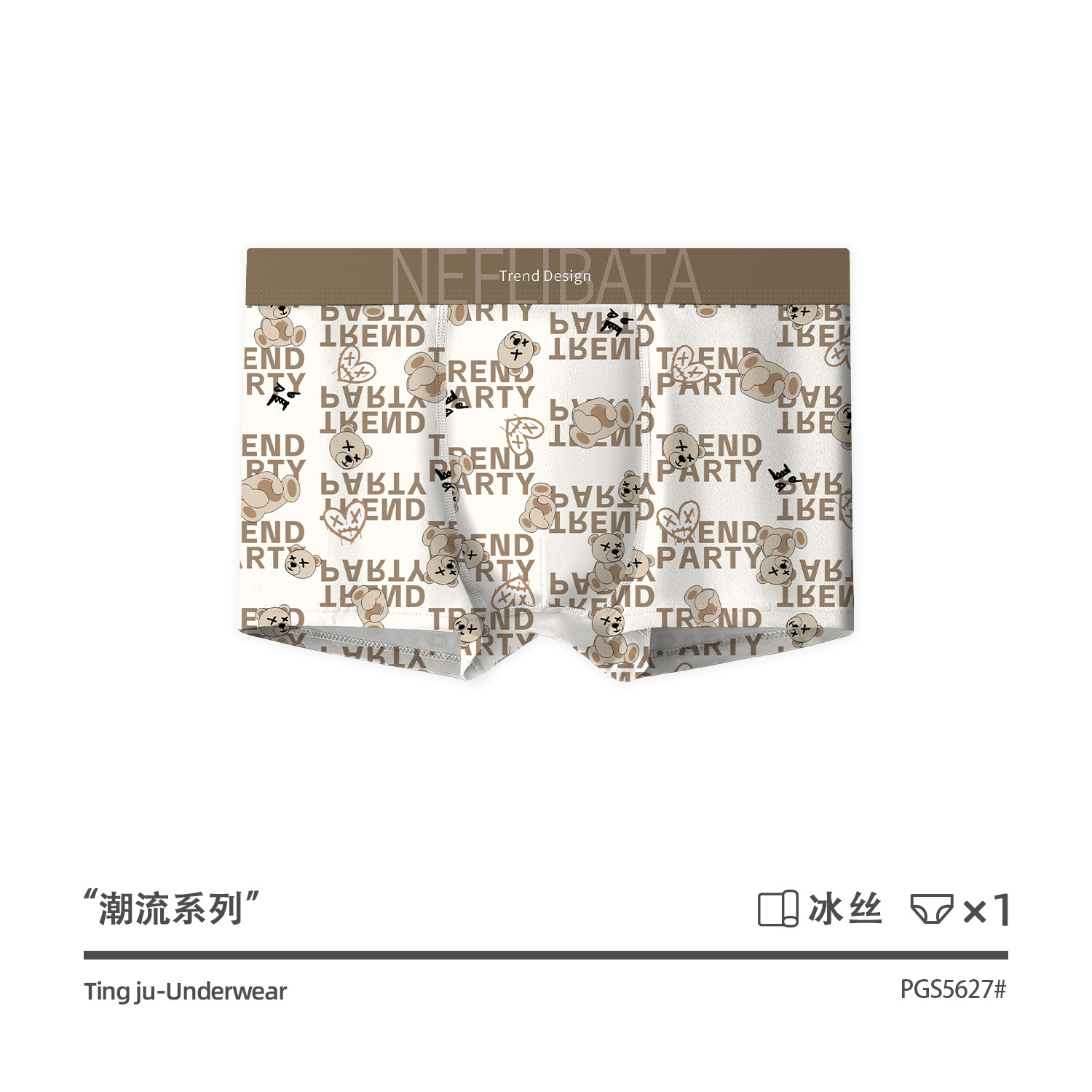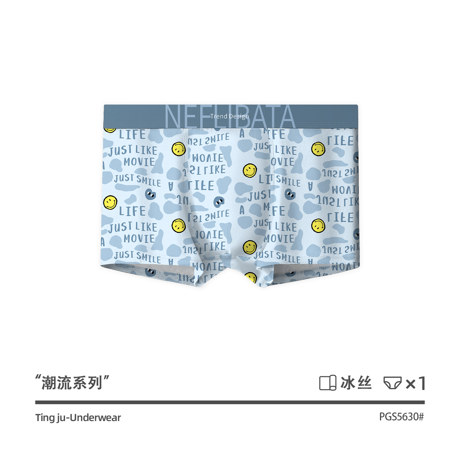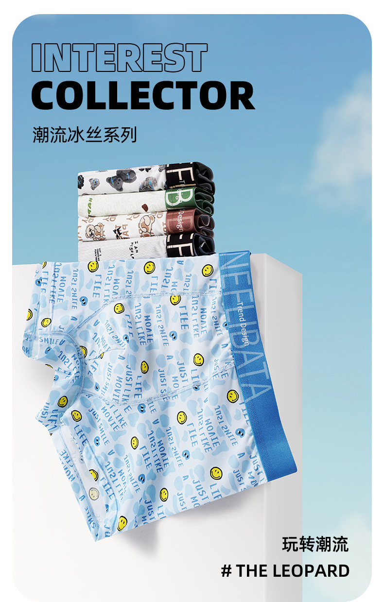 트렌디한 아이스 실크 남성 속옷, 아이스 느낌의 중간 허리 사각형 메쉬 항균 프린트 편안한 청소년 남성 속옷 도매스토어 가기