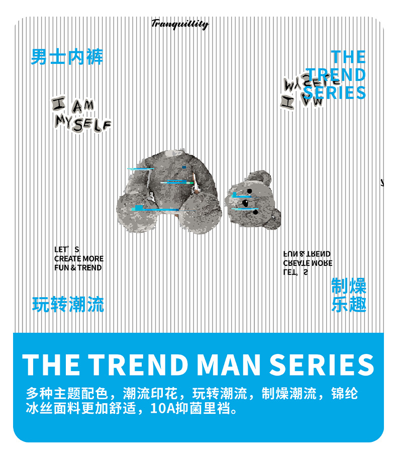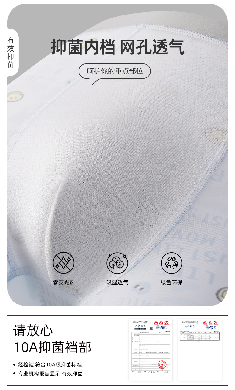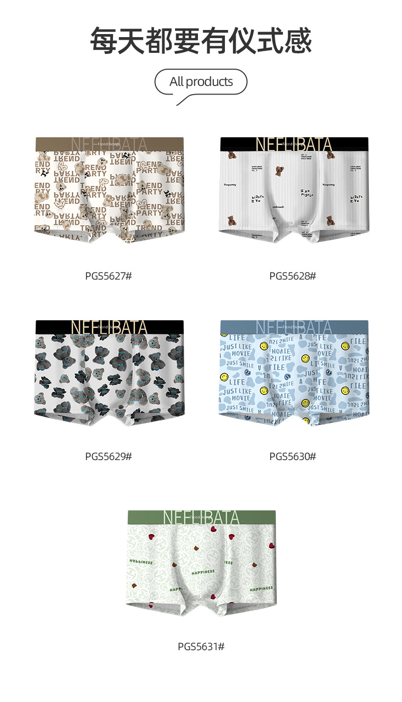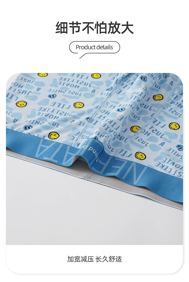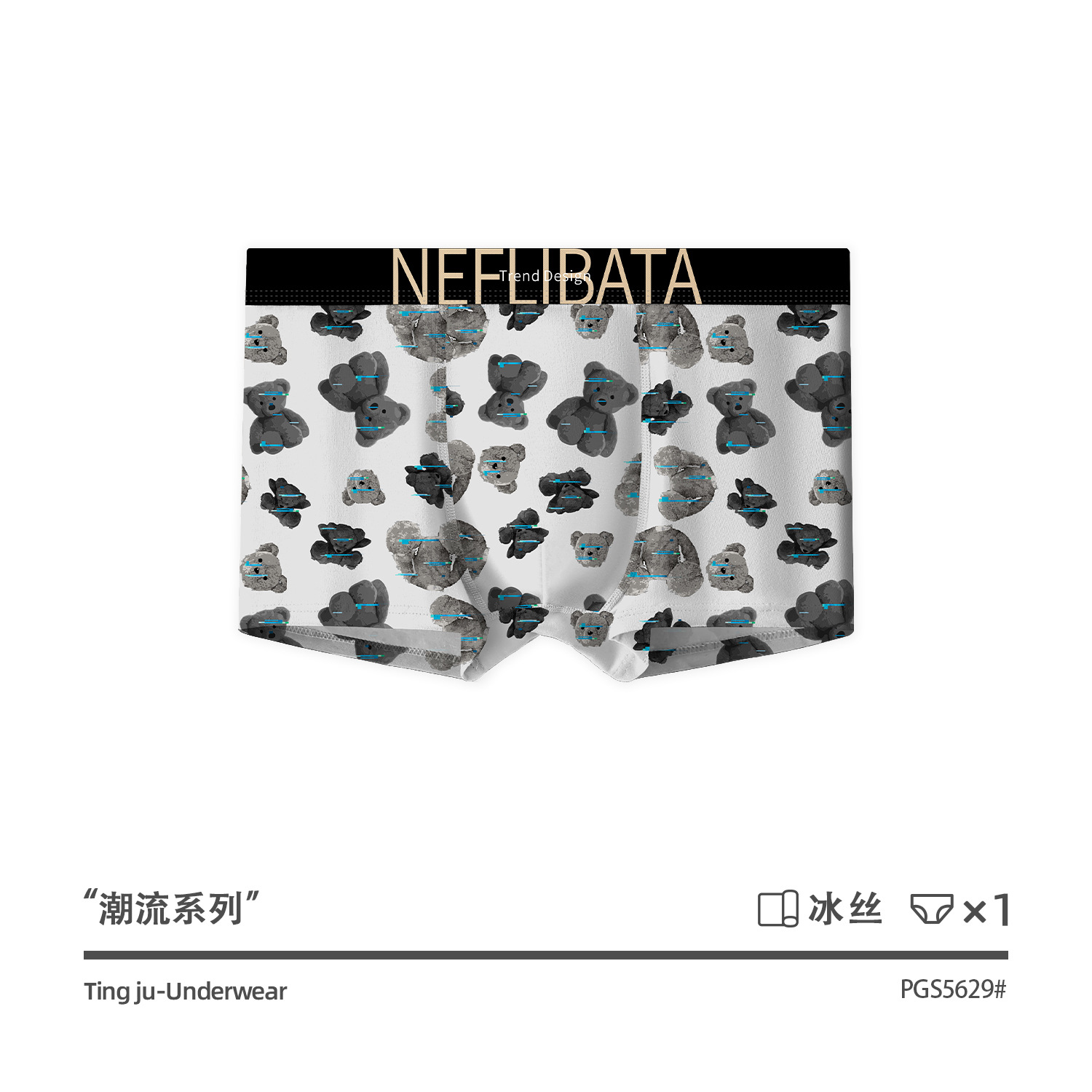 트렌디한 아이스 실크 남성 속옷, 아이스 느낌의 중간 허리 사각형 메쉬 항균 프린트 편안한 청소년 남성 속옷 도매스토어 가기