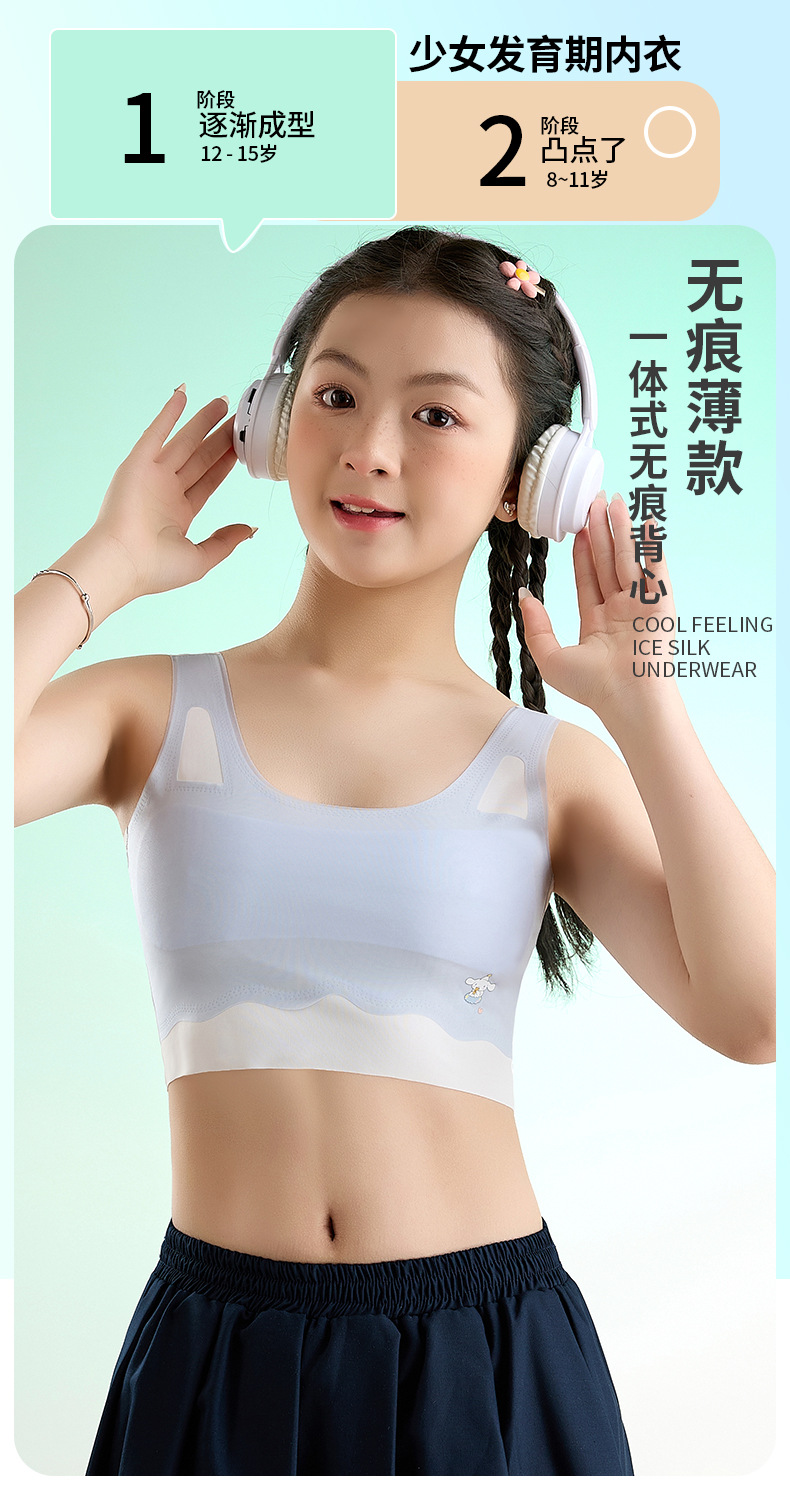 Yu Zhaolin 여아 속옷 발달 기간 작은 조끼 초등학생 1 단계 원활한 여름 얇은 어린이 소녀 브래지어스토어 가기