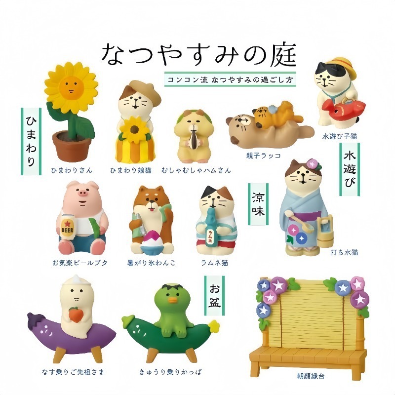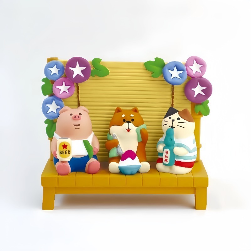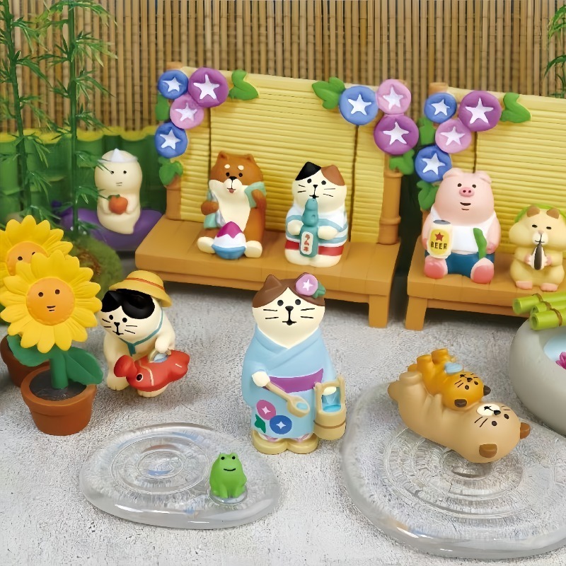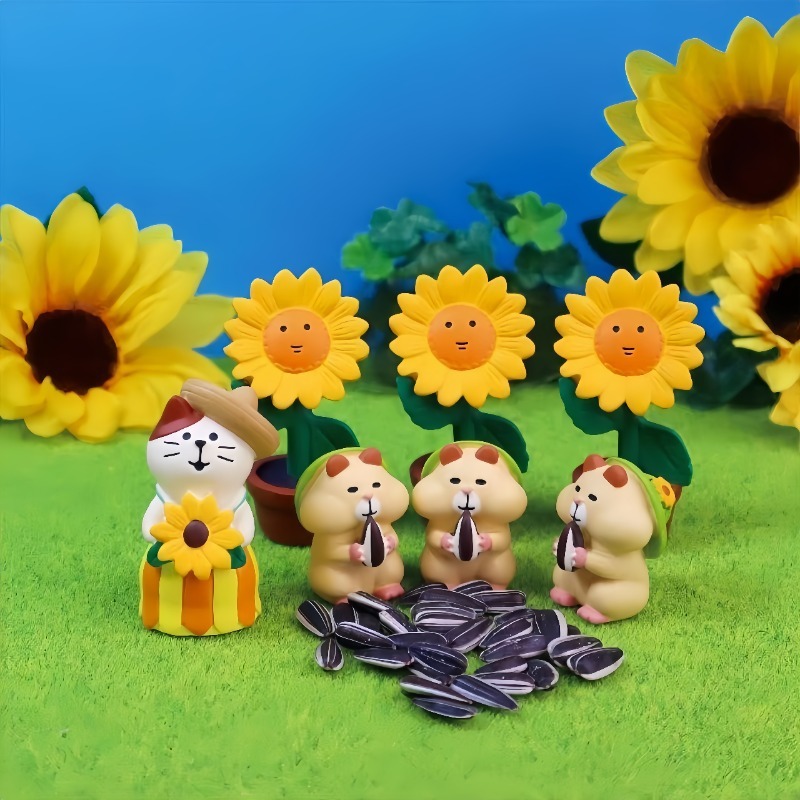 귀여운 일본 고양이 여름 안뜰 시리즈 해바라기 고양이 물고 고양이 스무디 시바견 수지 데스크탑 장식품스토어 가기