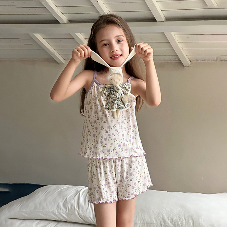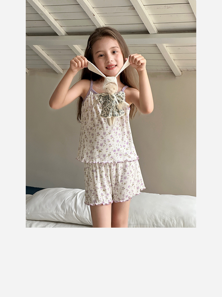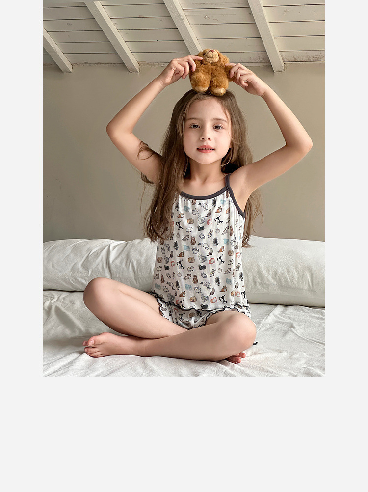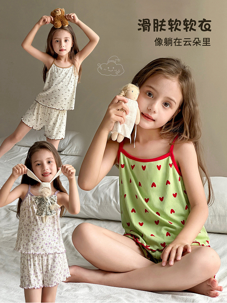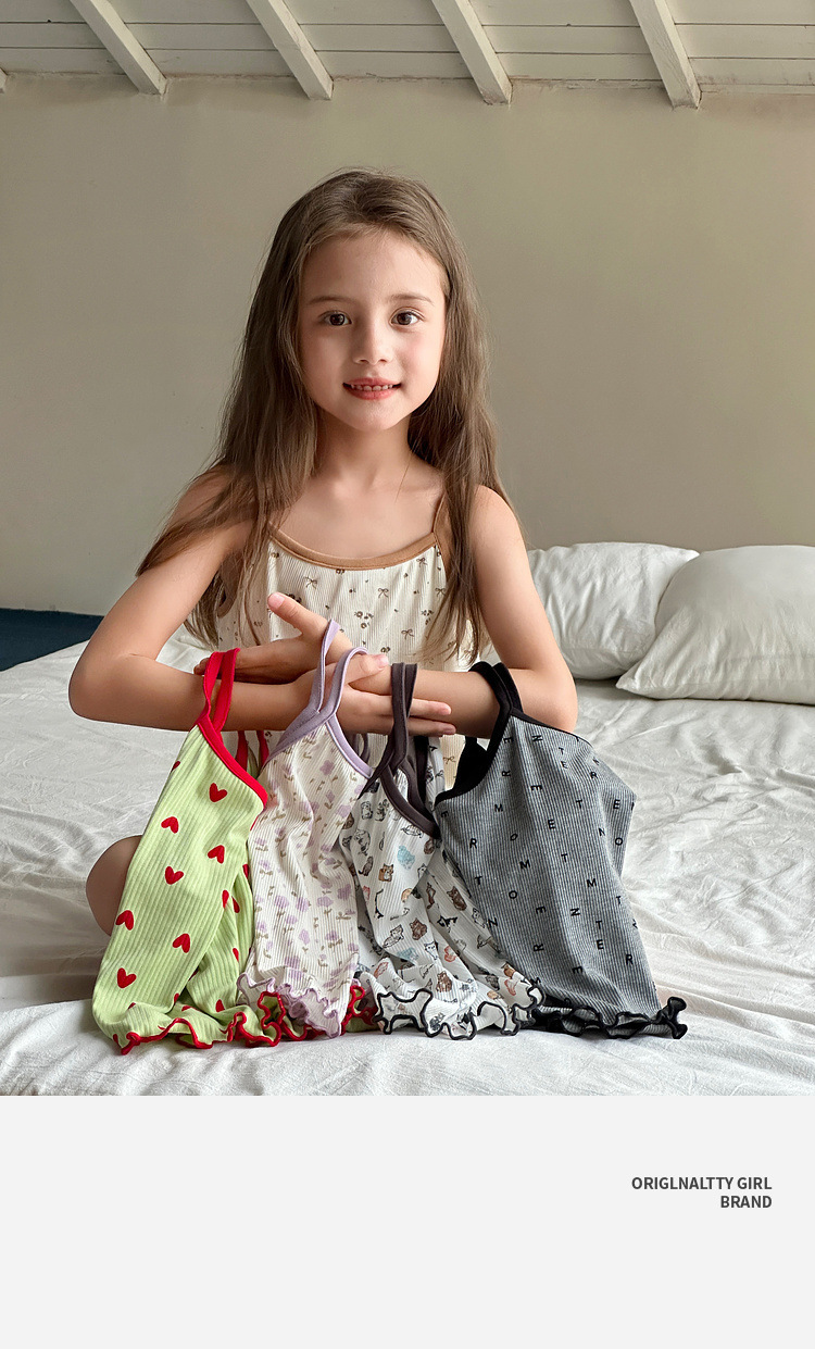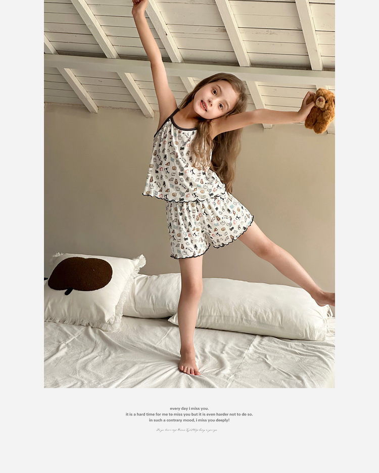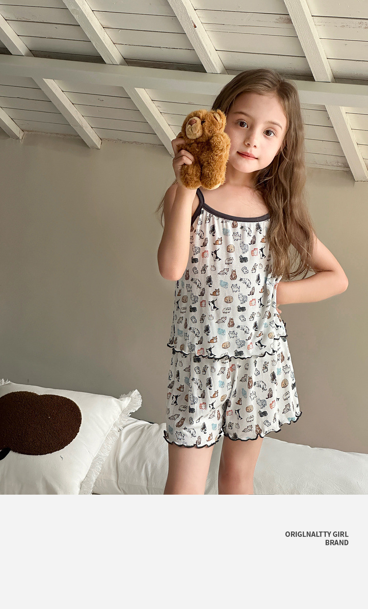TUTU 아기 코끼리 아동 의류 아동 잠옷 2025 여름 새 여자 가정 의류 중대형 어린이 캐미솔 양복스토어 가기