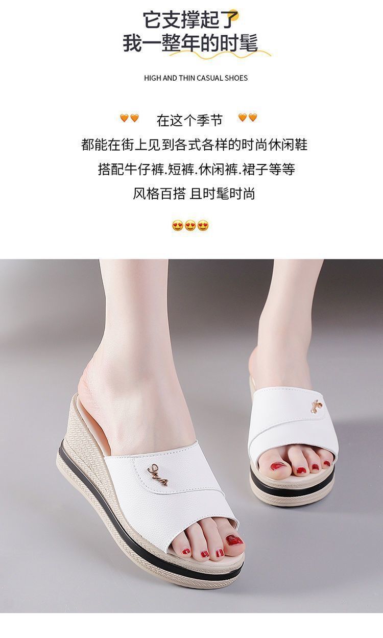 여름 신작 한국식 두꺼운 밑창 웨지힐 유럽과 미국 패션 중년 및 노년층 엄마 패션 슬리퍼 여성 신발스토어 가기
