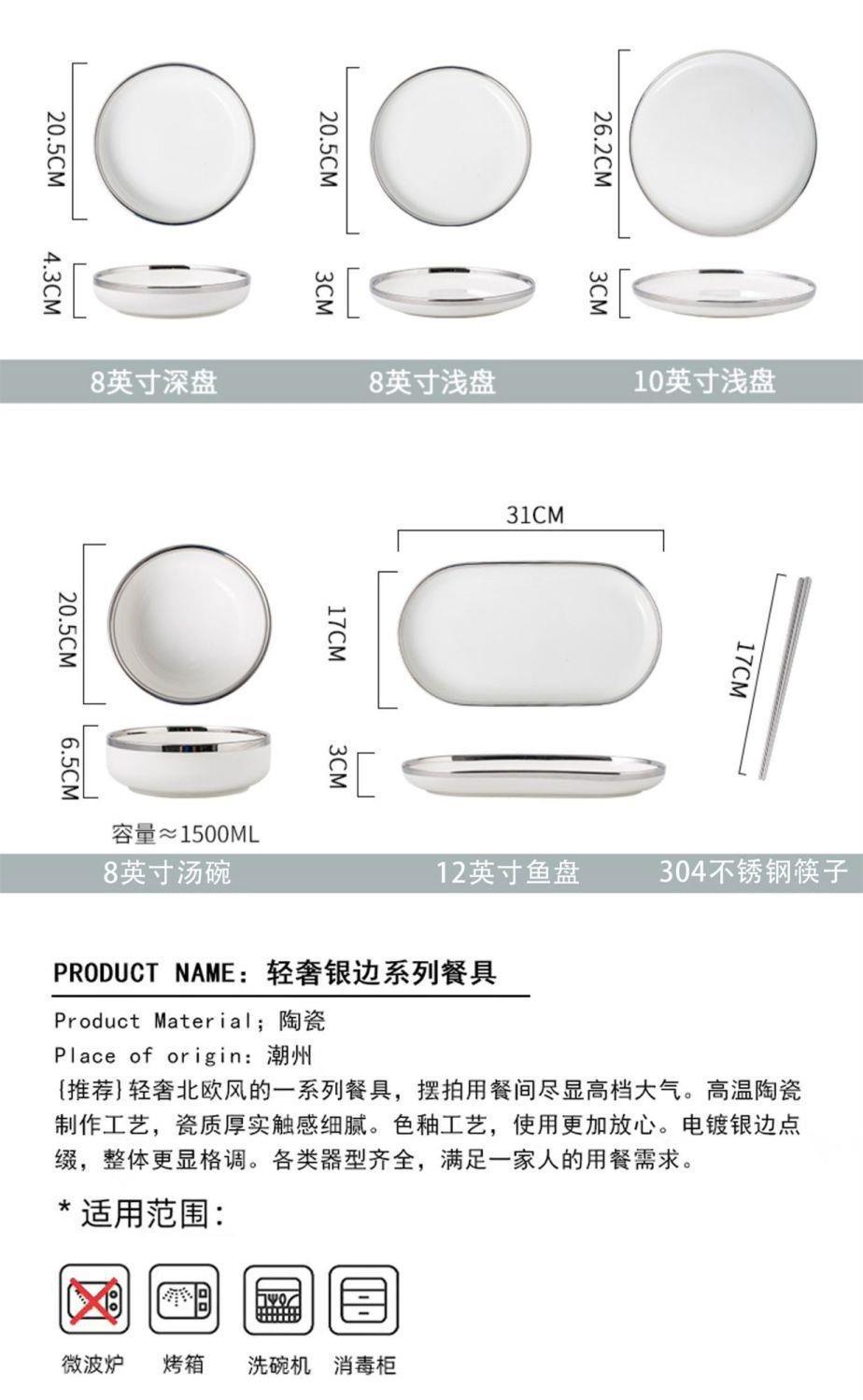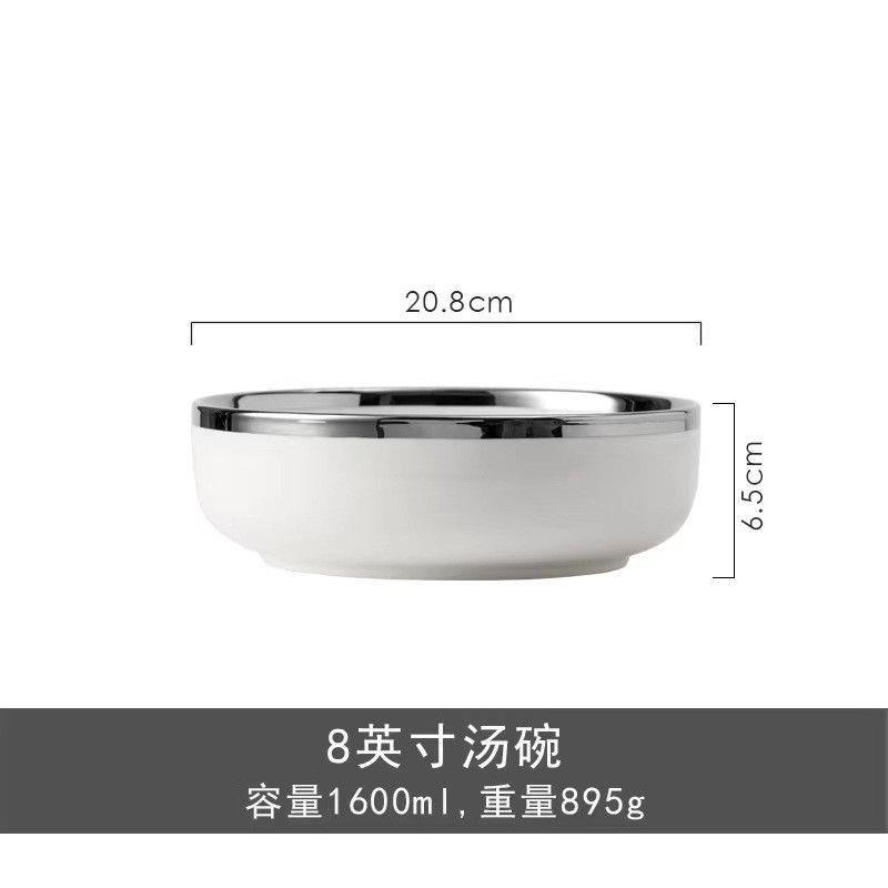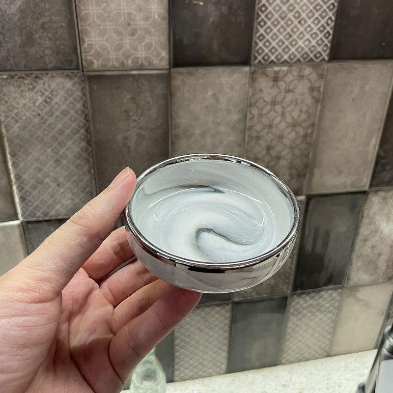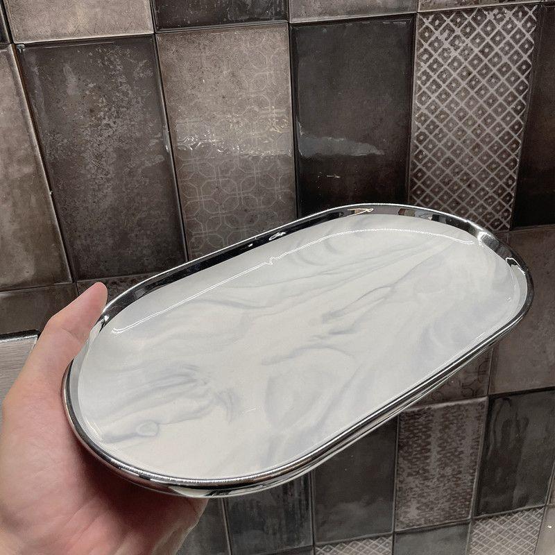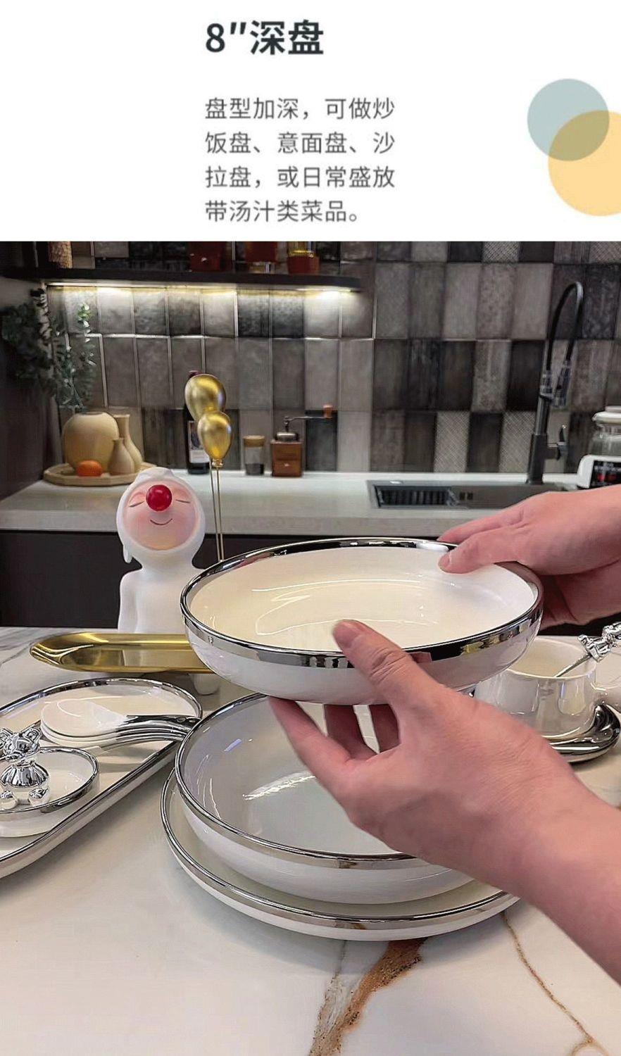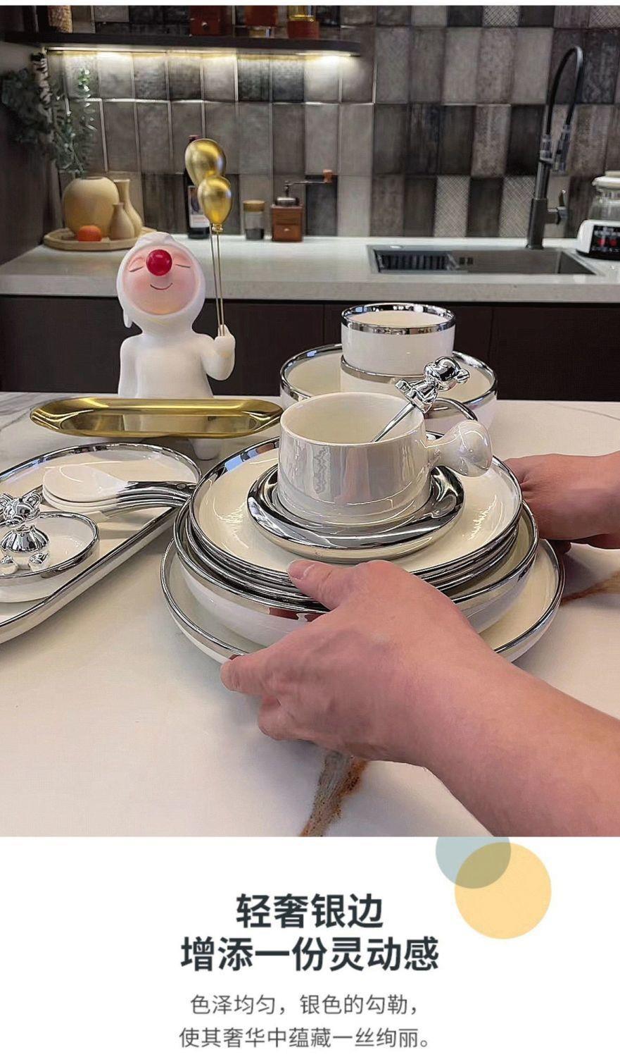 대리석 패턴의 가벼운 고급 실버 테두리 가정용 접시, 숟가락 및 젓가락, 접시, 세라믹 수프 그릇, 현대 식기스토어 가기