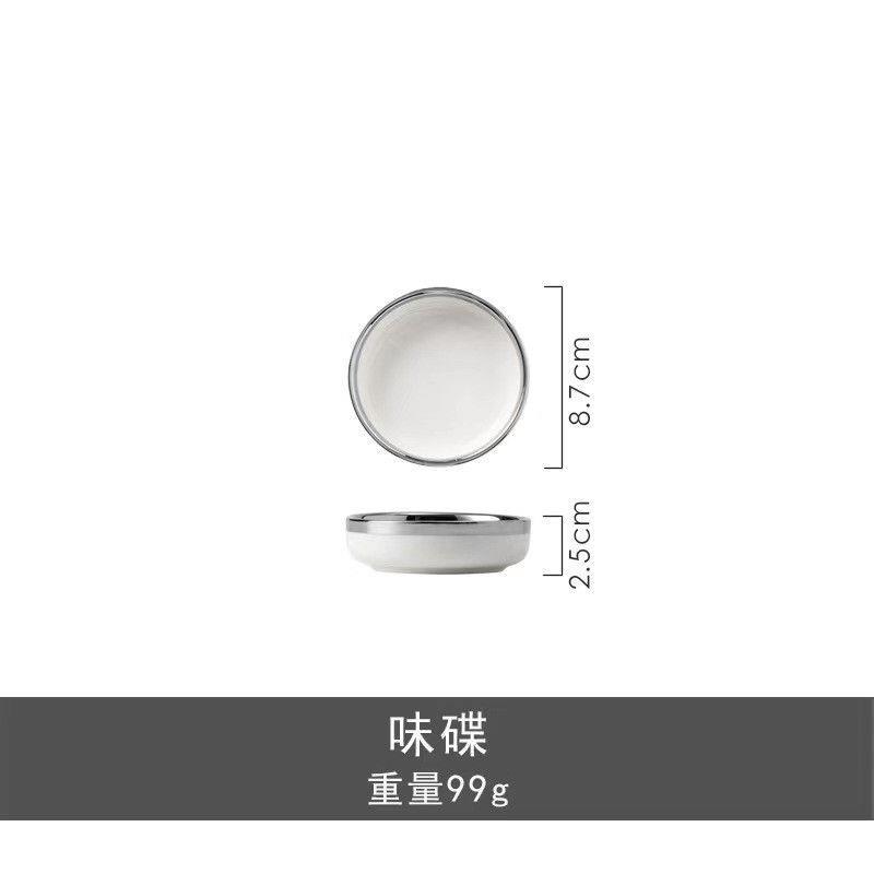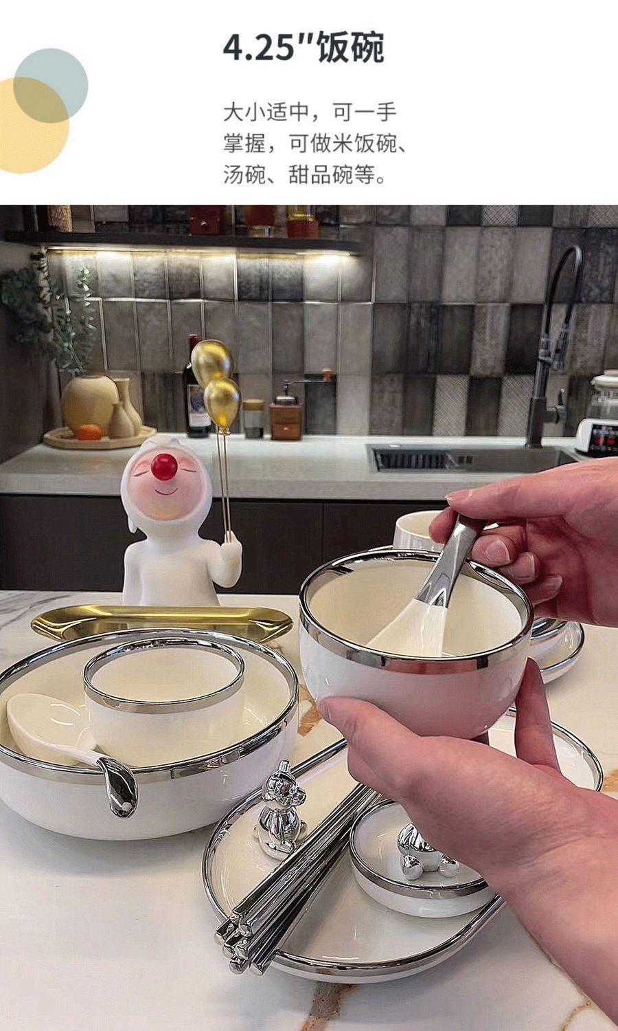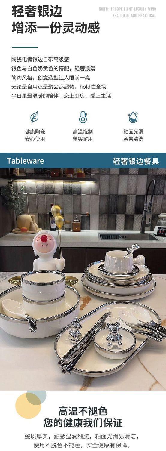 대리석 패턴의 가벼운 고급 실버 테두리 가정용 접시, 숟가락 및 젓가락, 접시, 세라믹 수프 그릇, 현대 식기