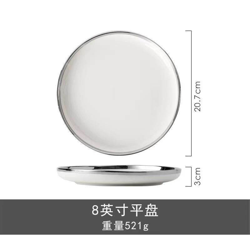 • 【 8inch 얕은 접시 】 흰색 은색 테두리