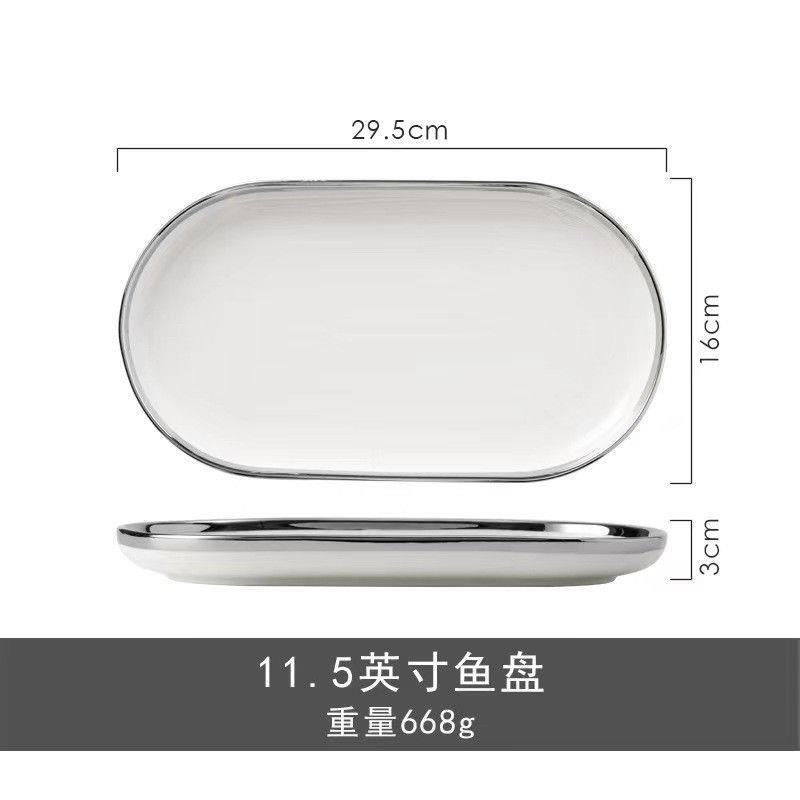 • 【생선 접시】화이트 실버 테두리