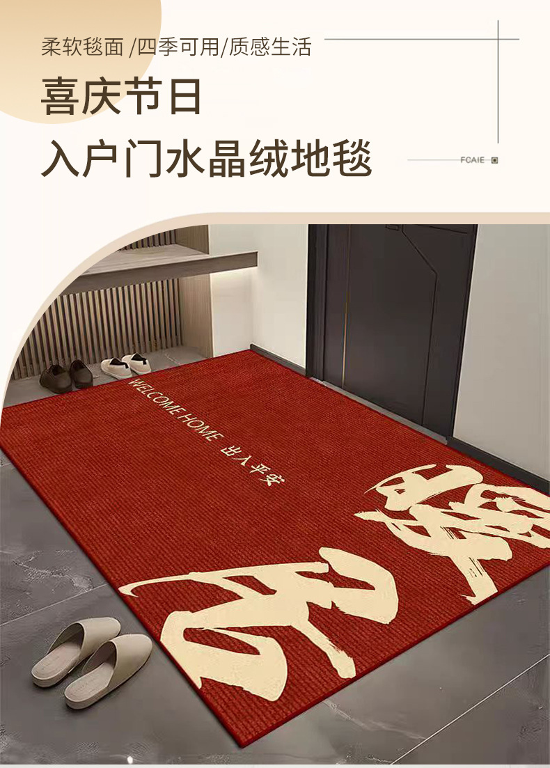 축제 현관, 고급 빨간색 현관문 바닥 매트, 간단한 현관문 발 매트, 현관 카펫, 얼룩 방지 및 관리 용이스토어 가기