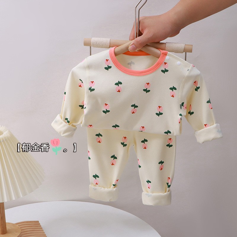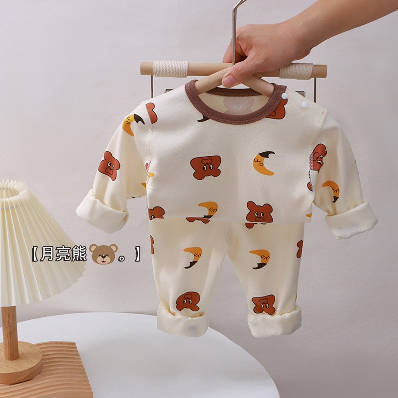 2025 어린이 봄, 가을 클래스 A 순면 가정 의류 잠옷 세트 소년과 소녀 속옷 세트 뼈없는 공예 0