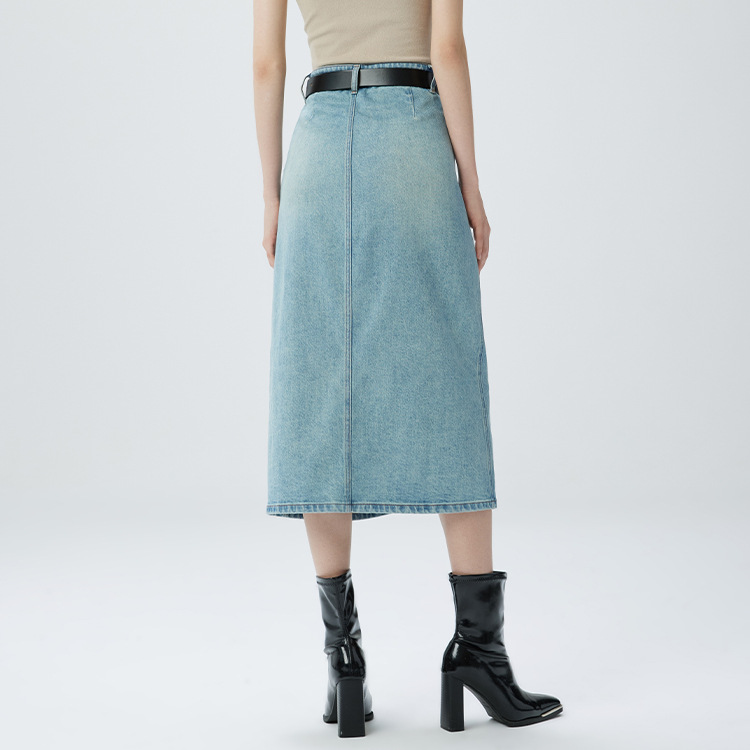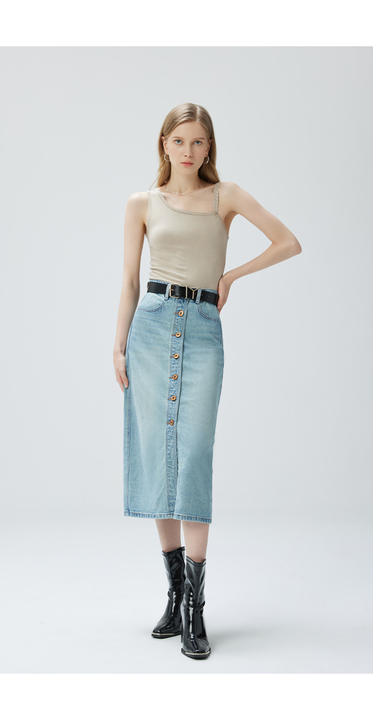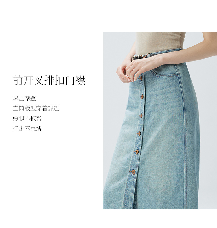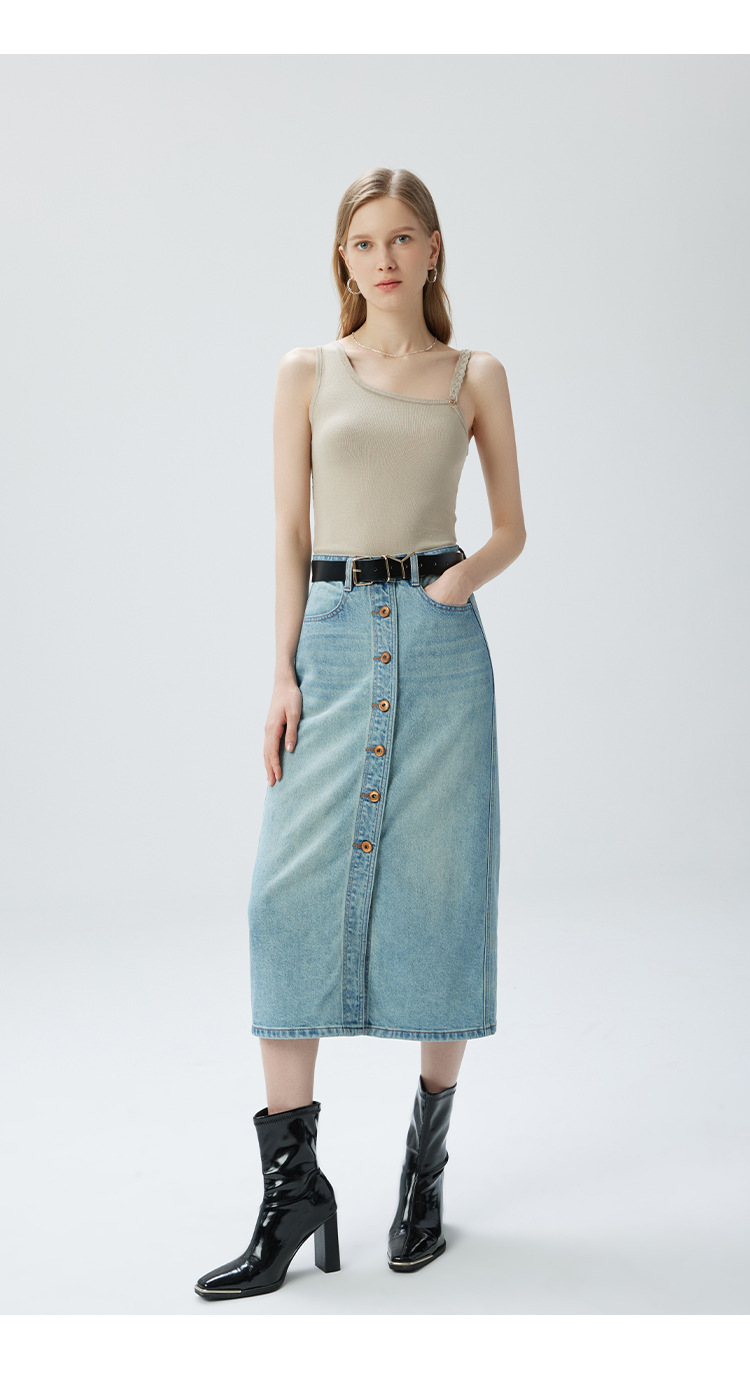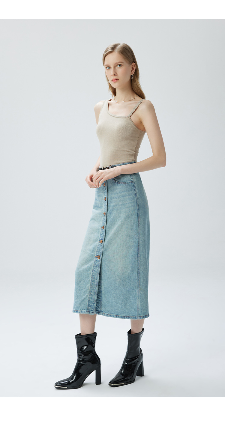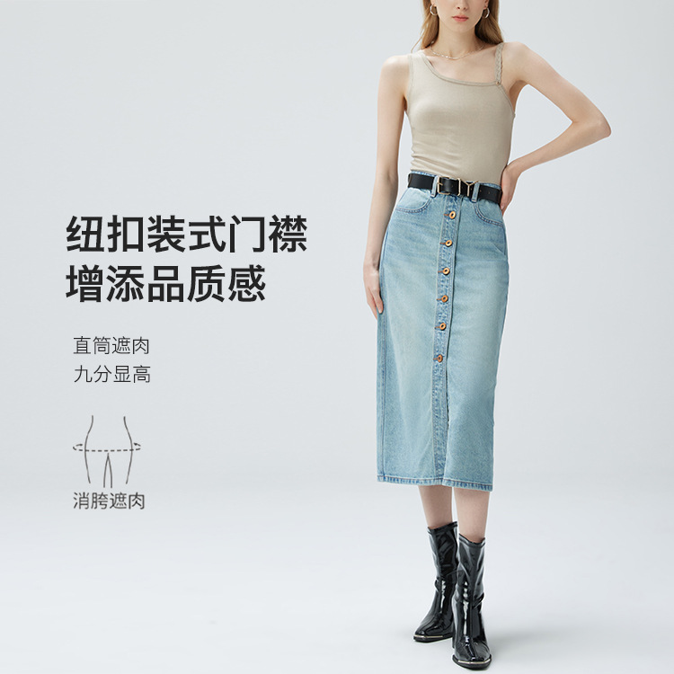 Coolmeipai 2025 여름 데님 스커트 우아한 캐주얼 하이 웨이스트 프론트 버튼 미드 스커트 레트로 블루 미디 스커트스토어 가기