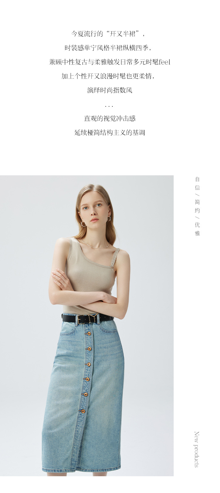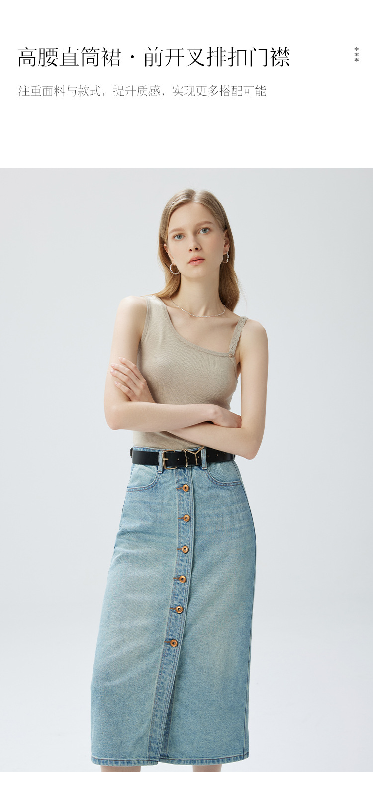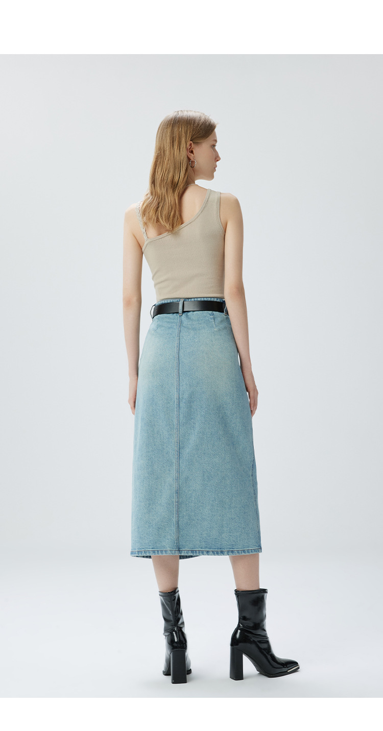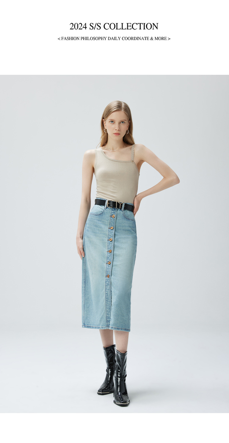 Coolmeipai 2025 여름 데님 스커트 우아한 캐주얼 하이 웨이스트 프론트 버튼 미드 스커트 레트로 블루 미디 스커트스토어 가기